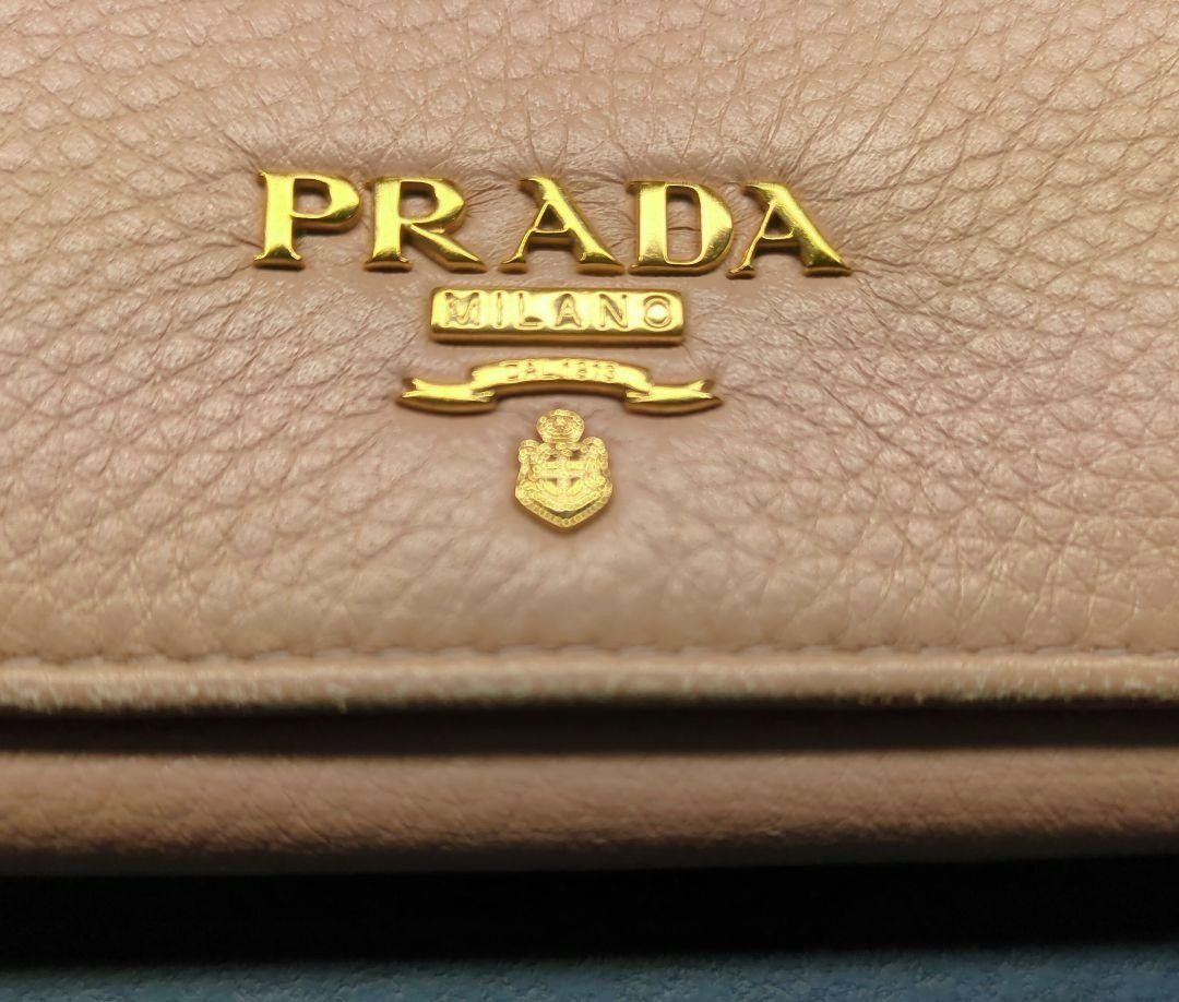 PRADA VITELLO GRAIN Pink Beige Trifold Wallet