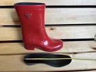 These Prada red rubber boots are a stylish and bold choice! The EU 36 (US 6) fits perfectly, and the vibrant color makes them stand out. Lightly used but in great condition, they ship fast—usually within a day. Worldwide delivery available, though timing varies. Seller is responsive and offers more options—check their shop! A must-have for fashion lovers.