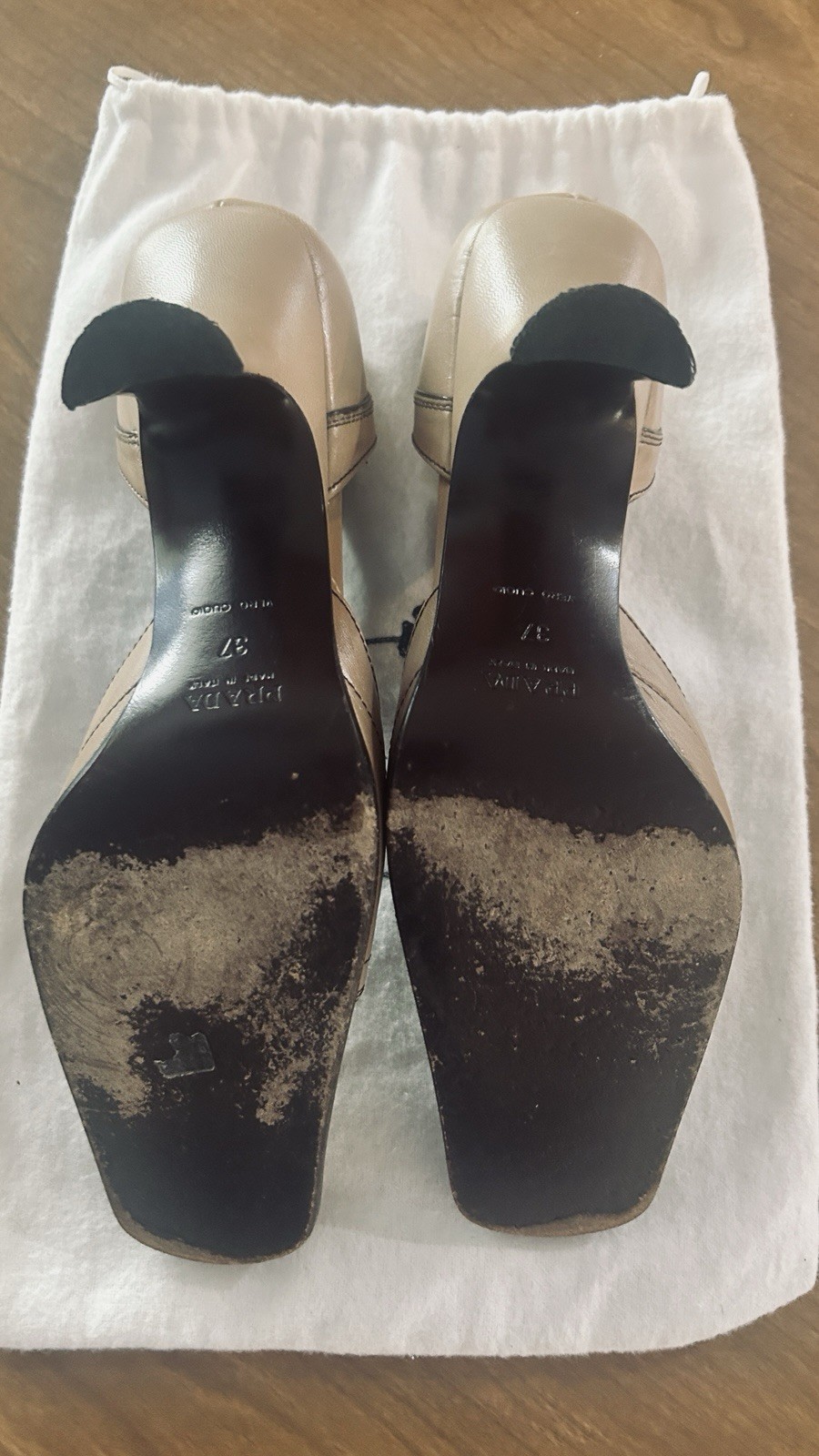 The PRADA Women's Leather Mary Jane T-strap Heels are sophisticated and stylish pumps perfect for the fashion-forward woman. Made of high-quality leather, these heels feature beige color w/ darker brown stitching with a buckle closure and a comfortable leather lining. The Mary Jane style adds a touch of elegance to any outfit, making these shoes a versatile choice for the fall and spring seasons. With the renowned PRADA brand, you can expect top-notch craftsmanship and timeless design that will elevate your wardrobe.