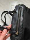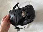 Up for sale is a stunning PRADA tessuto shoulder bag in black, featuring gold hardware accents. This medium-sized handbag is made of a combination of nylon and leather materials, and is perfect for adding a touch of luxury to any outfit. The interior lining is also made of a high-quality nylon and leather blend. This vintage PRADA bag is part of the Tessuto product line and boasts a classic and timeless design. It has been well-maintained and remains in excellent condition. The bag includes handles and straps made of both nylon and leather for added durability. Perfect for women who appreciate the finer things in life.