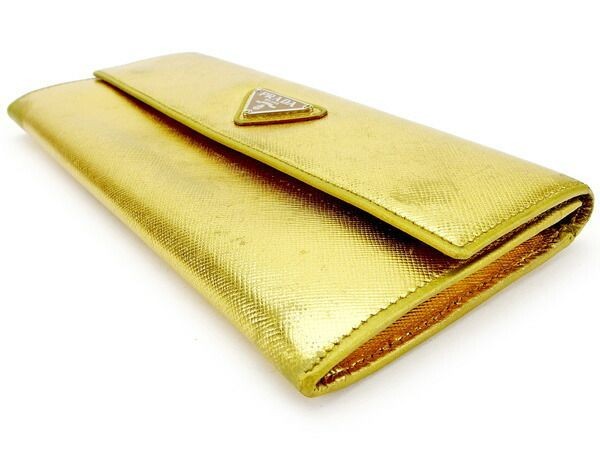 PRADA long zipper wallet with triangle logo in gold silver or brown saffiano leather
