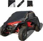 PRO XP Cover X3 Heavy Duty Seater Large Size Compatible with Can-Am Maverick X3, Polaris RZR PRO XP, Talon, Commander, , 2- Reflective Strip Sturdy in Wind Large Size for 2-3 Seater UTVs: Designed to accommodate 2 seater UTVs, our cover (dimensions: 130x71x58 inches) is compatible with Can-Am Maverick X3/Polaris RZR PRO XP/Talon/Commander/YXZ1000R/Massimo/Hisun/Axis/Coleman. Note: Not suitable for use during trailer transport Wind-Stability Design: The UTV cover is designed with a double-stitched seam elastic band and an adjustable elastic cord at the bottom, allowing it to adjust to the suitable size easily, providing excellent security on high windy days. The cover can stay on in 40 MPH winds Waterproof Oxford Cloth: Made from Oxford cloth with a waterproof PU and UV-resistant coating, our cover can withstand harsh conditions and prevent water seepage under 3000 Pa pressure. This keeps your SXS and rig protected from debris and weather damage, especially during the hot summer Be Seen at Night: The 2 seater cover features long reflective strips on both sides, providing a large reflective surface area for more effective warning signals to prevent collisions after parking at night. With this cover, your UTV will always be pristine. Simply remove the cover, jump on, and go Ideal Present & Convenient Choice: This heavy-duty cover has undergone rigorous material testing and quality control to ensure it stands up to wind and sun, stays durable, and looks new for longer. They are suitable for any holiday or special event, such as a birthday, anniversary, Christmas, or Valentine's Day present