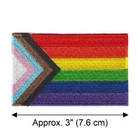 Iron On Patch Iron On Patch Description This brand new embroidered iron-on patch is well made with excellent details. It's a stylish accent for jackets, shirts, hats, bags or jeans. Details CONDITION: BRAND NEW MATERIAL : Embroidered Fabric with Iron On Adhesive Backing DESIGN: Progress Pride Flag SIZE: Approx. 2" tall x 3" wide (5 cm x 7.6 cm) WEIGHT: Less than 1 oz IRON-ON INSTRUCTIONS SPRAY WATER ON BACK OF PATCH PLACE PATCH ON GARMENT SET IRON TEMP TO 120-150 DEGREES OR "COTTON" SETTING COVER PATCH WITH A DAMP PIECE OF CLOTH IRON FOR 15-20 SECONDS, WAIT & REPEAT TURN GARMENT INSIDE OUT AND IRON UNTIL DRY LET COOL, CHECK ADHERENCE AND REPEAT STEPS 4 & 5 IF NEEDED STITCH PATCH ON FOR ADDED STRONGEST ADHERENCE. Click images to enlarge Shipping Calculated to location within the United States International Buyers International shipping charges are calculated to location in the 'Shipping and Payments' tab near the top of this page. Import duties, taxes, and charges are not included in the item price or shipping cost. These charges are the buyer's responsibility. Please check with your country's customs office to determine what these additional costs will be prior to bidding or buying. 'International First Class Mail' can take up to 6 business weeks for delivery depending on destination country, destination customs, and local or origin peak holiday shipping season. Faster 'International Priority Mail' shipping options are also available at checkout for most items. About Us The Tiny Dragon is a U.S. owned and operated 'e-retail' company. Our mission is to provide unique and affordable items of quality, promptly delivered to your complete satisfaction. Our items are shipped directly to you from our headquarters in beautiful Portland, Oregon USA. View our entire inventory at: At 'The Tiny Dragon' you are a valued customer and it is always our pleasure to serve you.