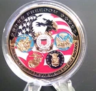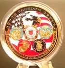 PROOFLIKE IN CLEAR PLASTIC CAPSULE. COPPER WITH NICKEL CLAD HONOR COIN WITH COLORFUL EMBLEMS OF FIRST FIVE SERVICES OF THE USA MILITARY BRANCHES: NAVY.MARINES,COAST GUARD,ARMY,AIR FORCE(DOES NOT INCLUDE THE NEWER SPACE FORCE). ON THE REVERSE SIDE IS THE GREAT SEAL OF THE UNITED STATES OF AMERICA/WASHINGTON D.C.