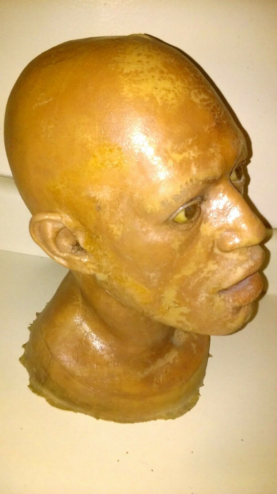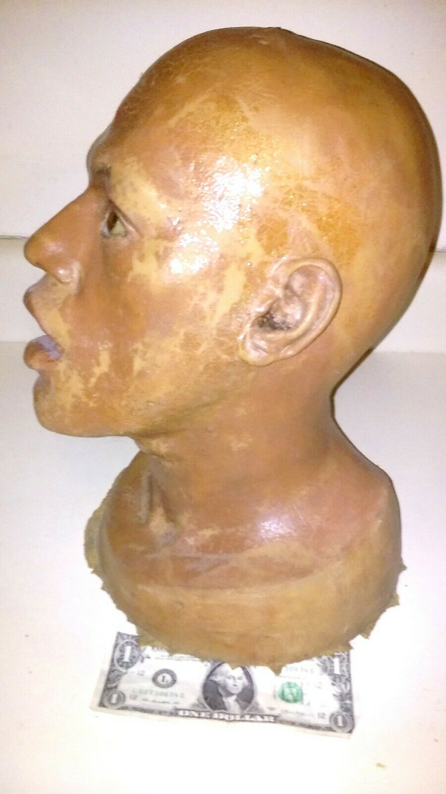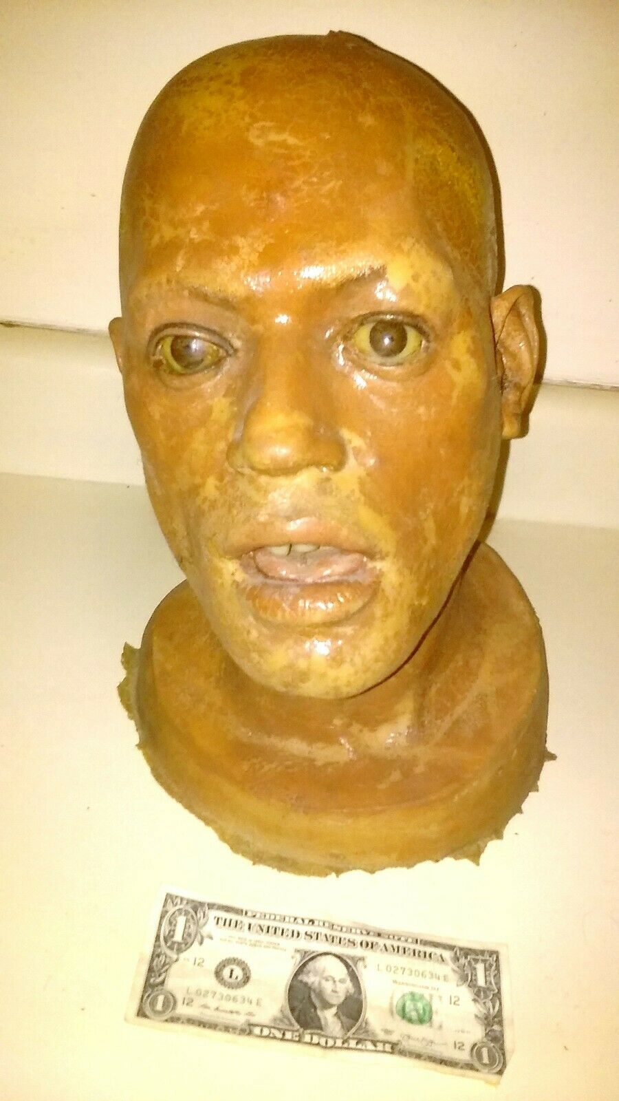 Maybe one of you can help me figure out where this is from. POSSIBLY screen used LAURENCE FISHBURNE HEAD. I cannot confirm where this is from. Its a latex foam head. Used, dirty, paint flaking , it has been poked a hole in at the top SEE PICS, SEE PICS, AS IS CONDITION. Many blemishes, damage, etc. AS IS, ALL SALES FINAL, FOR PARTS, NO RETURNS. FULL INSURANCE, SIGNATURE CONFIRMATION. CA residents,sales tax applies.
