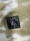 The product is a pair of men's joggers from PRPS Goods Co, featuring a tie-dye drop crotch design in green. Made from a blend of linen and cotton, these pants have a baggy fit and regular size S. They come with a logo accent, 29-inch inseam, and offer comfort and stretch for ease of movement. Perfect for those interested in a unique and stylish addition to their wardrobe with a hint of Japanese flair.