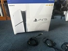 Like-New PS5 Slim Disc Console Bundle with 2 Controllers & 4 Games! Excellent Condition Condition: Used - Like-New Condition This is an opportunity to own a complete PlayStation 5 Slim console bundle in excellent, well-cared-for condition, meticulously cared for in a smoke-free, pet-free home. I am selling it because I don't have enough time to play it. Everything is in perfect working order, with minimal signs of use. This is the disc-drive version, so you can play both physical and digital games. What's Included: PS5 Slim Console (Disc Edition): (CFI-2015 model) Fully functional, with 1TB of storage. Two (2) DualSense Wireless Controllers, one black and one white: Both controllers are in excellent working condition with no stick drift or button issues. One is the original controller that came with the console, and the second is an extra one I purchased. Three (3) Physical Games: College Football 25 (PS5) NHL 24 (PS5) Call of Duty WWII (PS4) All Original Cables: Power cord, HDMI cable, and USB-C cable for charging the controllers. Original Box: The console and all accessories will be shipped in the original box for the console and controller. Note: The original box has a 8 inch tear that has been taped. This bundle is ready to go right out of the box, with everything you need to start gaming immediately. The console has been factory reset and all data has been wiped clean, so it's ready for its new owner. Please see the photos for the exact items and their condition.