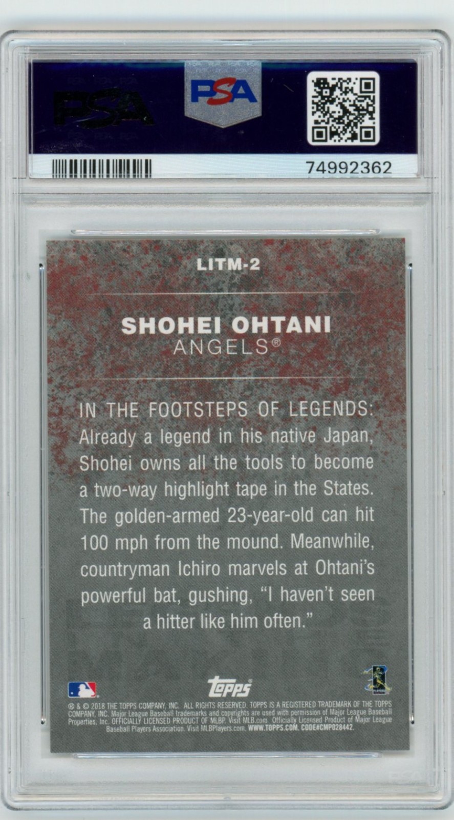 Selling a PSA 10 2018 Topps #2 Shohei Ohtani Legends In The Making RC Angels Item #:71172 Combined Shipping is free, no additional charges for additional cards Mahalo and Thank You For Looking.