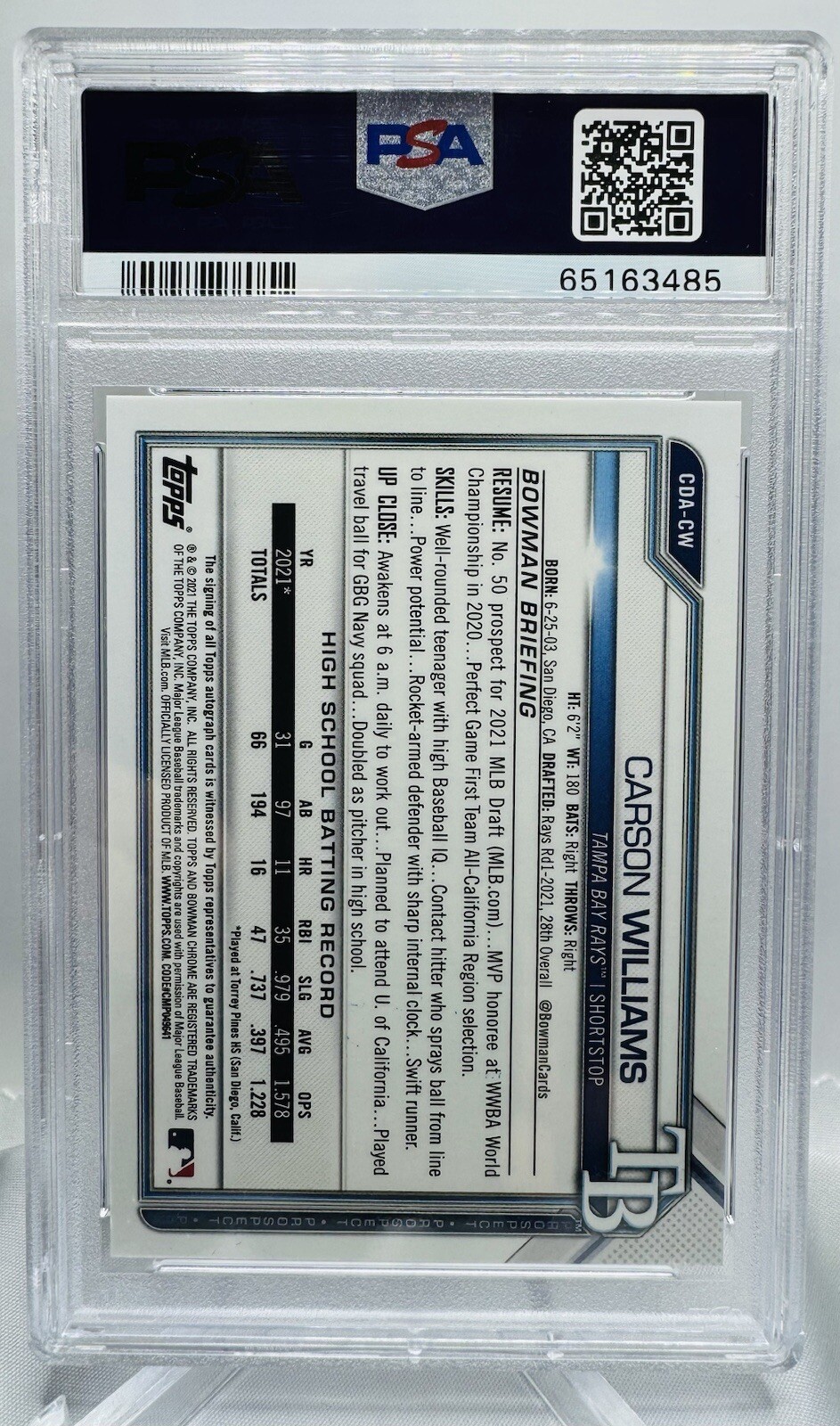PSA 10 2021 Bowman Draft Chrome Auto CARSON WILLIAMS #CDACW RC GEM MINT Rays