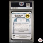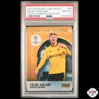 This is a highly sought-after 2021-22 Topps Stadium Club Chrome UCL - Championship Contribution single-insert trading card featuring Erling Haaland of Borussia Dortmund. The card is a PSA 10 and has a gold refractor parallel/variety that is serial numbered to 50, making it a short print (SSP) with a low population (LowPOP). The card is an original and manufactured by Topps. It also has other card attributes such as being serial numbered and is a great addition for soccer fans and collectors alike.