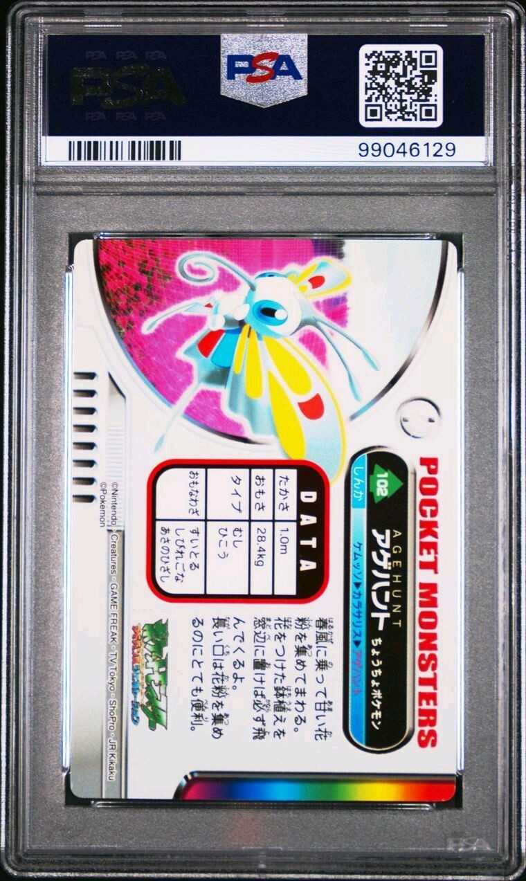 PSA 10 GEM MINT Beautifly #102 Carddass Zukan Advanced Gen Bandai Pokémon POP 1. POP 1 as of 12/23/24. Please reach out with any questions and we would be happy to assist you. Returns are not accepted. You will receive the exact graded card pictured. Please see high resolution scans. Purchase of this item signifies agreement that Grade, Actual Condition and expected standards all match. Please see PSA website for more info. Shipping info: All graded cards are shipped securely in bubble mailer and cardboard box; regardless of price. Please reach out with any concerns before contacting ebay and we'd be happy to assist you. Please note that due to inventory accuracy, purchases will not be cancelled before or after shipping. Please reach out with any questions before purchase and we would be happy to assist you.