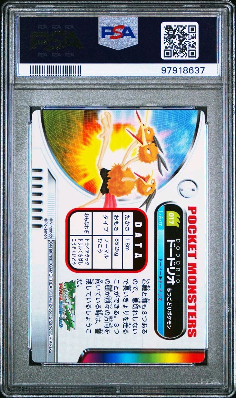 PSA 10 GEM MINT Dodrio #017 Carddass Zukan Advanced Gen. Bandai Pokémon POP 1. POP 1 as of 12/18/24. Please reach out with any questions and we would be happy to assist you. Returns are not accepted. You will receive the exact graded card pictured. Please see high resolution scans. Purchase of this item signifies agreement that Grade, Actual Condition and expected standards all match. Please see PSA website for more info. Shipping info: All graded cards are shipped securely in bubble mailer and cardboard box; regardless of price. Please reach out with any concerns before contacting ebay and we'd be happy to assist you. Please note that due to inventory accuracy, purchases will not be cancelled before or after shipping. Please reach out with any questions before purchase and we would be happy to assist you.