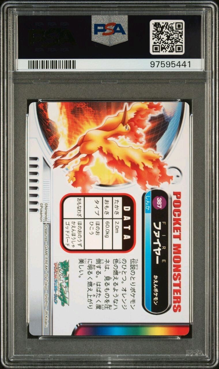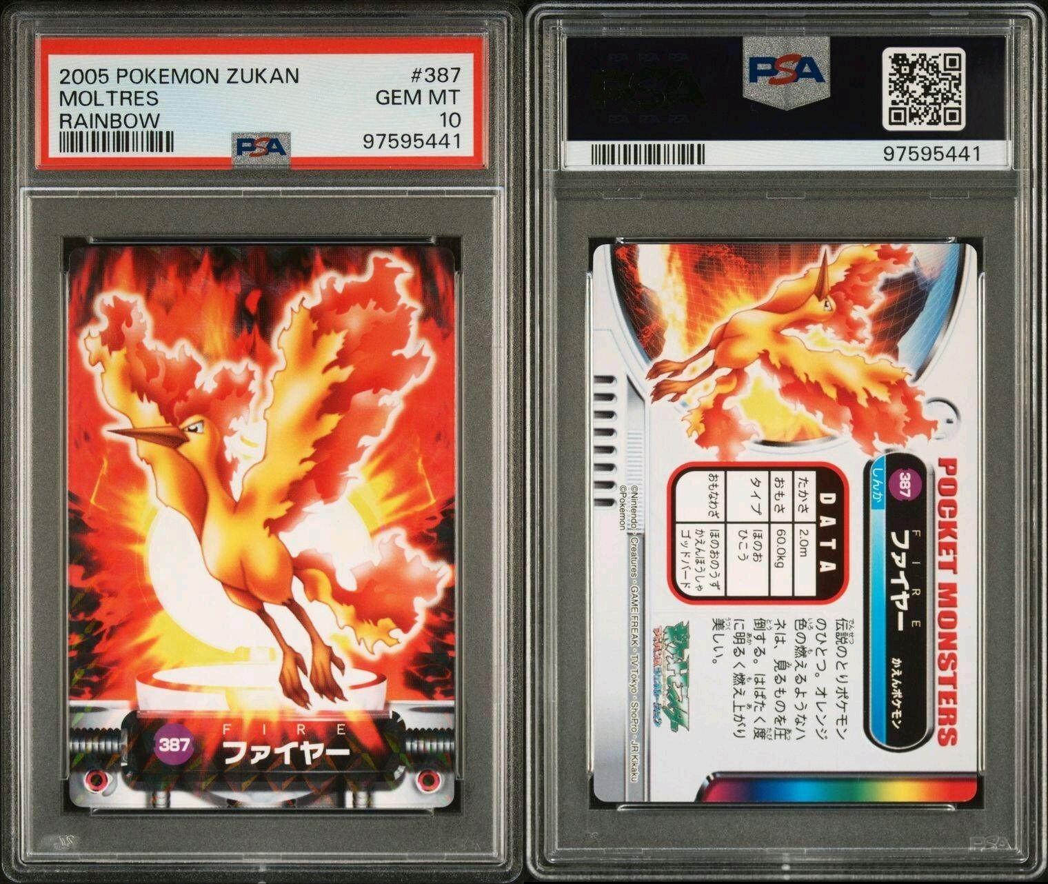 PSA 10 GEM MINT Moltres #387 Carddass Zukan Rainbow Holo Bandai Pokémon POP 2. POP 2 as of 12/18/24. Please reach out with any questions and we would be happy to assist you. Returns are not accepted. You will receive the exact graded card pictured. Please see high resolution scans. Purchase of this item signifies agreement that Grade, Actual Condition and expected standards all match. Please see PSA website for more info. Shipping info: All graded cards are shipped securely in bubble mailer and cardboard box; regardless of price. Please reach out with any concerns before contacting ebay and we'd be happy to assist you. Please note that due to inventory accuracy, purchases will not be cancelled before or after shipping. Please reach out with any questions before purchase and we would be happy to assist you.