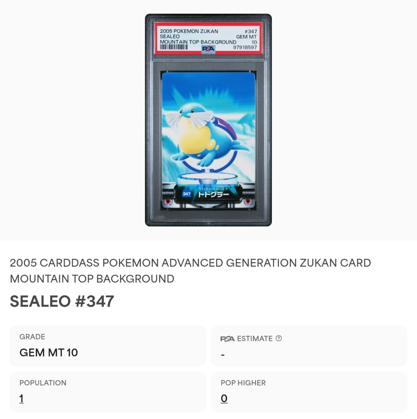 PSA 10 GEM MINT Sealeo #347 Carddass Zukan Advanced Gen. Bandai Pokémon POP 1. POP 1 as of 12/18/24. Please reach out with any questions and we would be happy to assist you. Returns are not accepted. You will receive the exact graded card pictured. Please see high resolution scans. Purchase of this item signifies agreement that Grade, Actual Condition and expected standards all match. Please see PSA website for more info. Shipping info: All graded cards are shipped securely in bubble mailer and cardboard box; regardless of price. Please reach out with any concerns before contacting ebay and we'd be happy to assist you. Please note that due to inventory accuracy, purchases will not be cancelled before or after shipping. Please reach out with any questions before purchase and we would be happy to assist you.