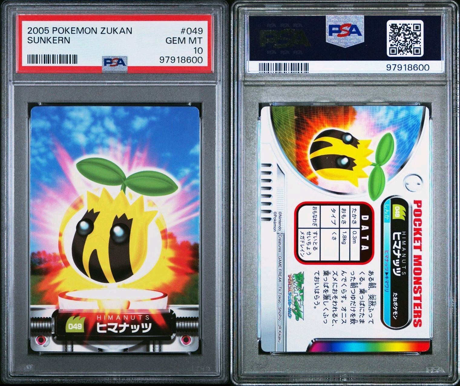 PSA 10 GEM MINT Sunkern #049 Carddass Zukan Advanced Gen. Bandai Pokémon POP 2. POP 2 as of 12/24/24. Please reach out with any questions and we would be happy to assist you. Returns are not accepted. You will receive the exact graded card pictured. Please see high resolution scans. Purchase of this item signifies agreement that Grade, Actual Condition and expected standards all match. Please see PSA website for more info. Shipping info: All graded cards are shipped securely in bubble mailer and cardboard box; regardless of price. Please reach out with any concerns before contacting ebay and we'd be happy to assist you. Please note that due to inventory accuracy, purchases will not be cancelled before or after shipping. Please reach out with any questions before purchase and we would be happy to assist you.