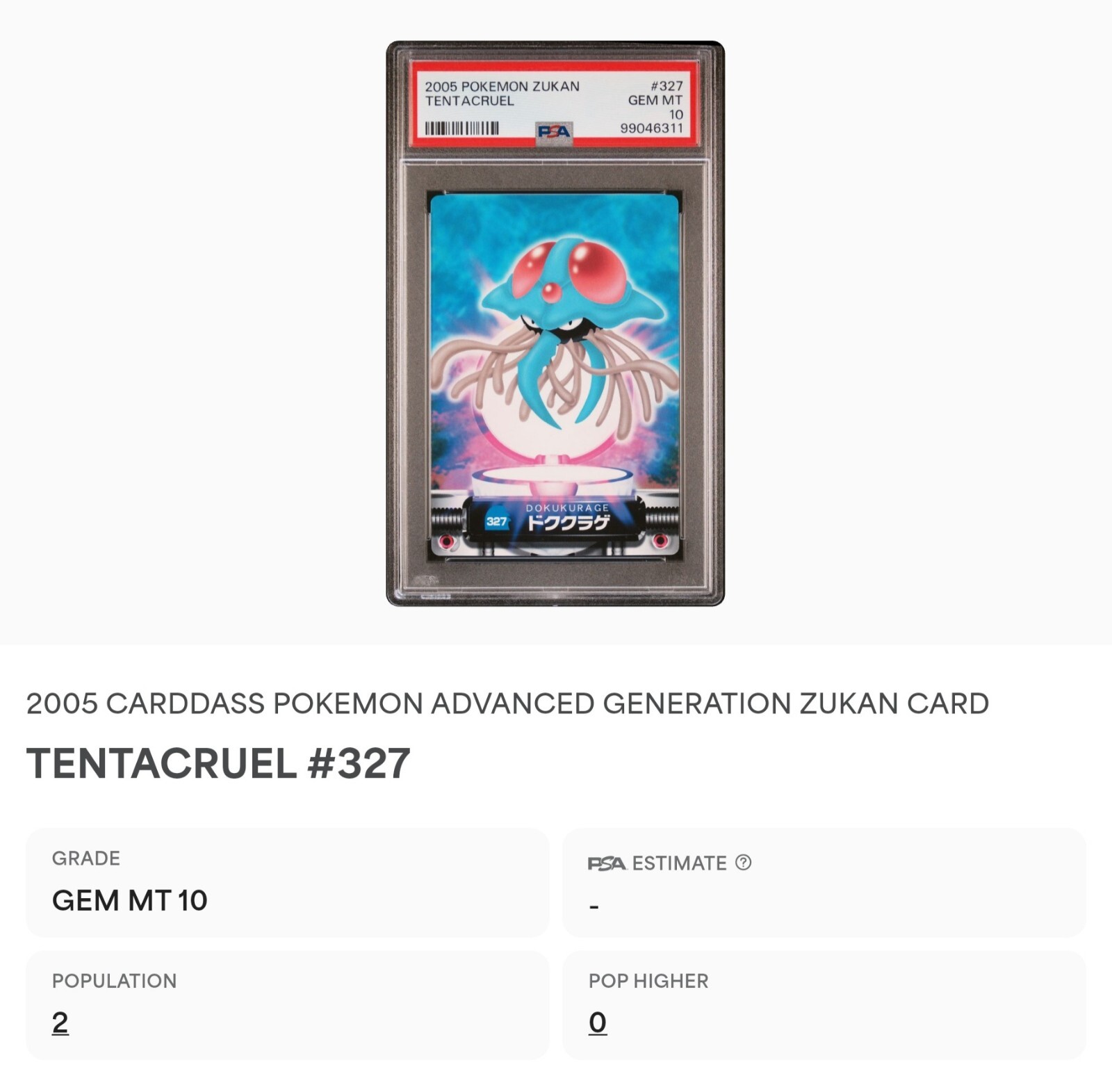 PSA 10 GEM MINT Tentacruel #327 Carddass Zukan Advanced Gen. Bandai Pokémon POP 2. POP 2 as of 12/23/24. Please reach out with any questions and we would be happy to assist you. Returns are not accepted. You will receive the exact graded card pictured. Please see high resolution scans. Purchase of this item signifies agreement that Grade, Actual Condition and expected standards all match. Please see PSA website for more info. Shipping info: All graded cards are shipped securely in bubble mailer and cardboard box; regardless of price. Please reach out with any concerns before contacting ebay and we'd be happy to assist you. Please note that due to inventory accuracy, purchases will not be cancelled before or after shipping. Please reach out with any questions before purchase and we would be happy to assist you.