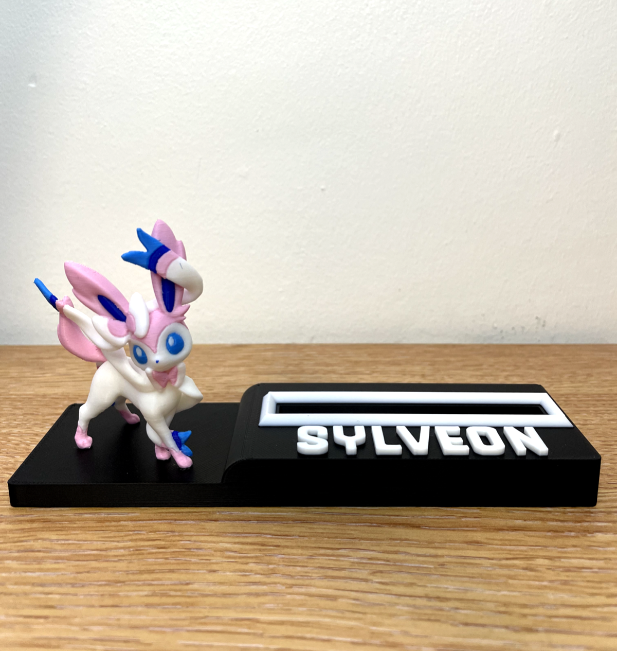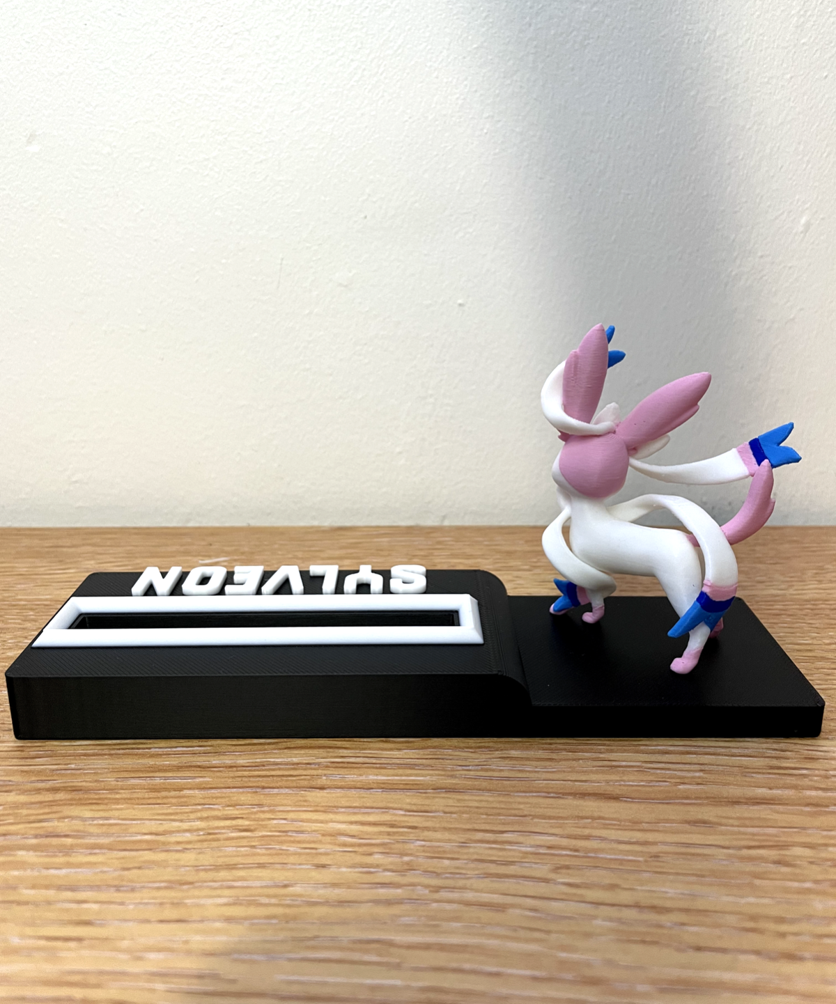 DISPLAY STAND ONLY/ POKEMON CARDS NOT INCLUDED! Novelty Pokemon stand to display your cherished SYLVEON card stand is compatible with PSA / ACE / CGC and MGC graded slabs or you can display a non graded card More display stands available to suit your favourite Pokemon (check out our listings ) discounts for multiple purchases. If we DON'T have the stand you need, drop us a message so we can get it made for you. All custom orders welcome , no order to big and no order to small. text and colours can also be customised crafted using high quality materials and top of the range 3D printing machinery.