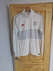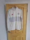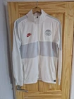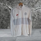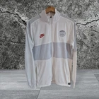 Pit to pit - 22 inches Length - 28 inches Crafted for the sports enthusiast, the PSG Paris Saint Germain Nike Dri-Fit Track Jacket in a crisp white hue is a versatile addition to your wardrobe. The men's size L fits comfortably, thanks to its regular fit, ensuring ease of movement whether you're on the field or cheering from the stands. The jacket's long sleeves and zip closure provide a sleek look while offering practicality for different weather conditions. The jacket's 100% polyester outer shell and lining boast a softshell fabric type that is both lightweight and durable. Designed to keep you comfortable across all seasons, it features Nike's Dri-Fit technology, ideal for a range of activities including football, cycling, and even casual outings. Care is effortless with its machine washable nature, ensuring this piece remains a staple in your activewear collection.