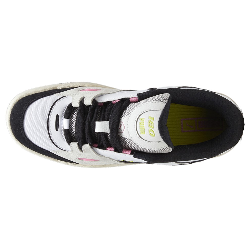Puma-180 Fashion Lace Up Sneakers Product Details Regular fit Textile base Suede band and toe Overlay of a tumbled nubuck quarter Synthetic eyelets, tongue label, quarter panel and heel counter Color: Puma White/Vapor Gray/Puma Black The PUMA-180 is a pair inspired by the skate culture of the late 90s and 2000s, based on oversized styling, chunky shapes and a lo-fi technical upper. The PUMA-180 also relies on a few gems available from our PUMA archives to ensure its authenticity and credibility. Finally, this version includes a textile base, leather inserts and shiny details with TPU relief. Additional Details Manufacturer Color: Puma White/Vapor Gray/Puma Black Color: White Occasion: Casual Gender: Mens Age: Adult Brand: Puma