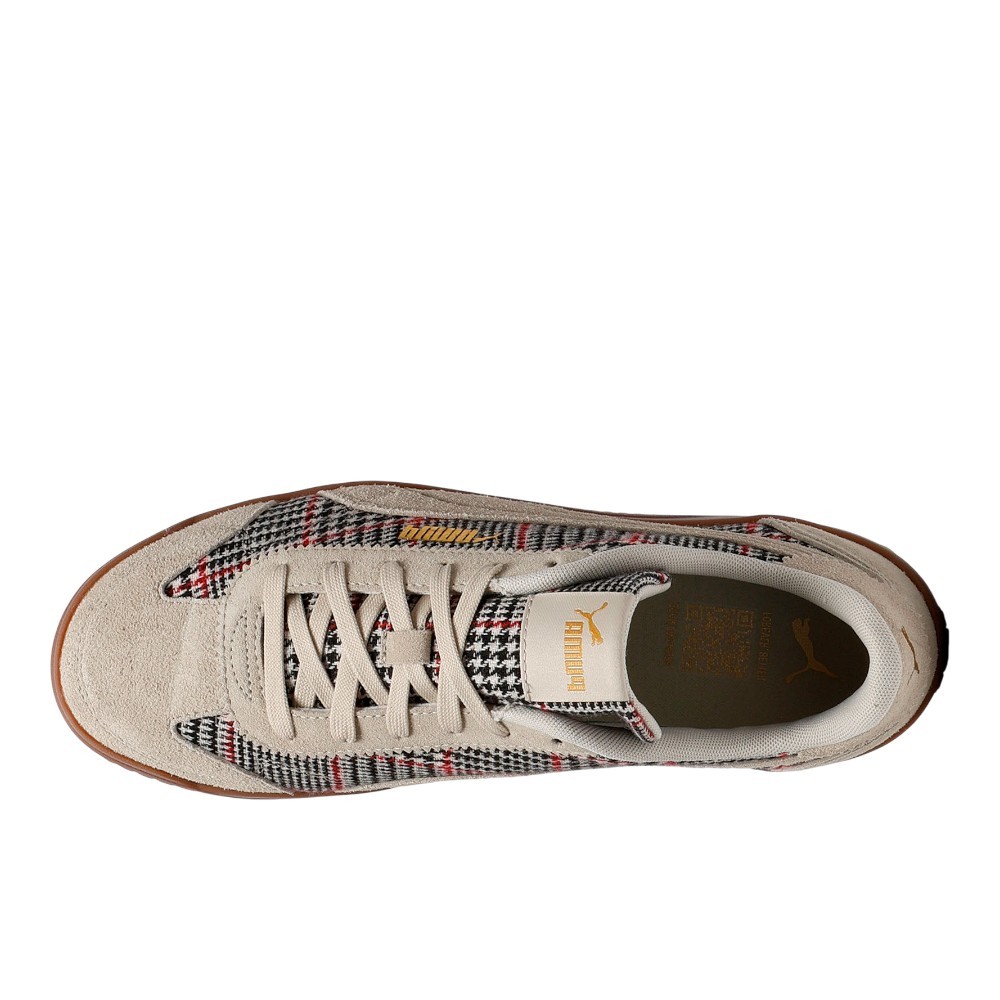 Club 5V5 Lux Plaid Lace Up Sneakers Product Details Width: Regular Toe Type: Rounded Fastener: Laces Heel type: Flat Rubber toe cap with spike design details Color: Desert Dust/Puma Gold Born on the field, this terrace-inspired sneaker combines suede overlays with bold plaid detailing. The low-profile rubber outsole provides durability with every step, while the SOFTFOAM+ sockliner ensures all-day cushioning. From game-day vibes to casual walks, PUMA brings soccer DNA to your everyday style. Additional Details Manufacturer Color: Desert Dust/Puma Gold Color: Beige Occasion: Casual Gender: Mens Age: Adult Brand: