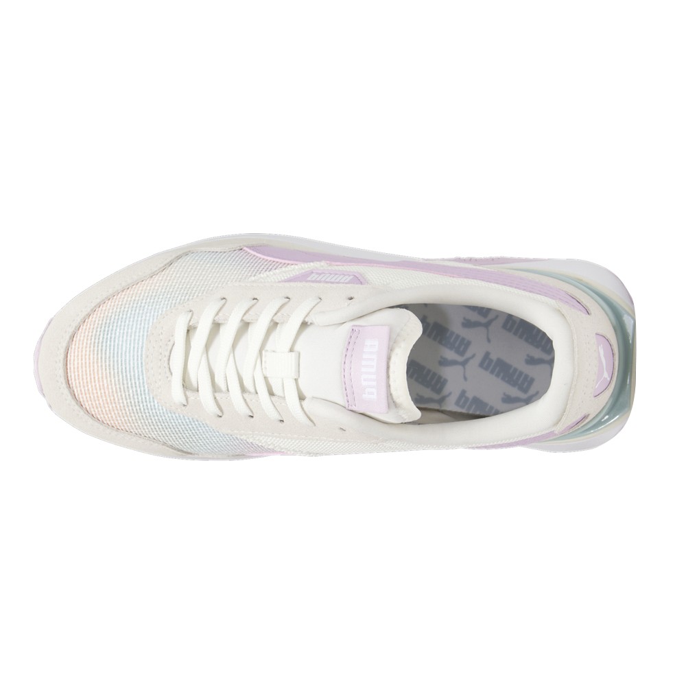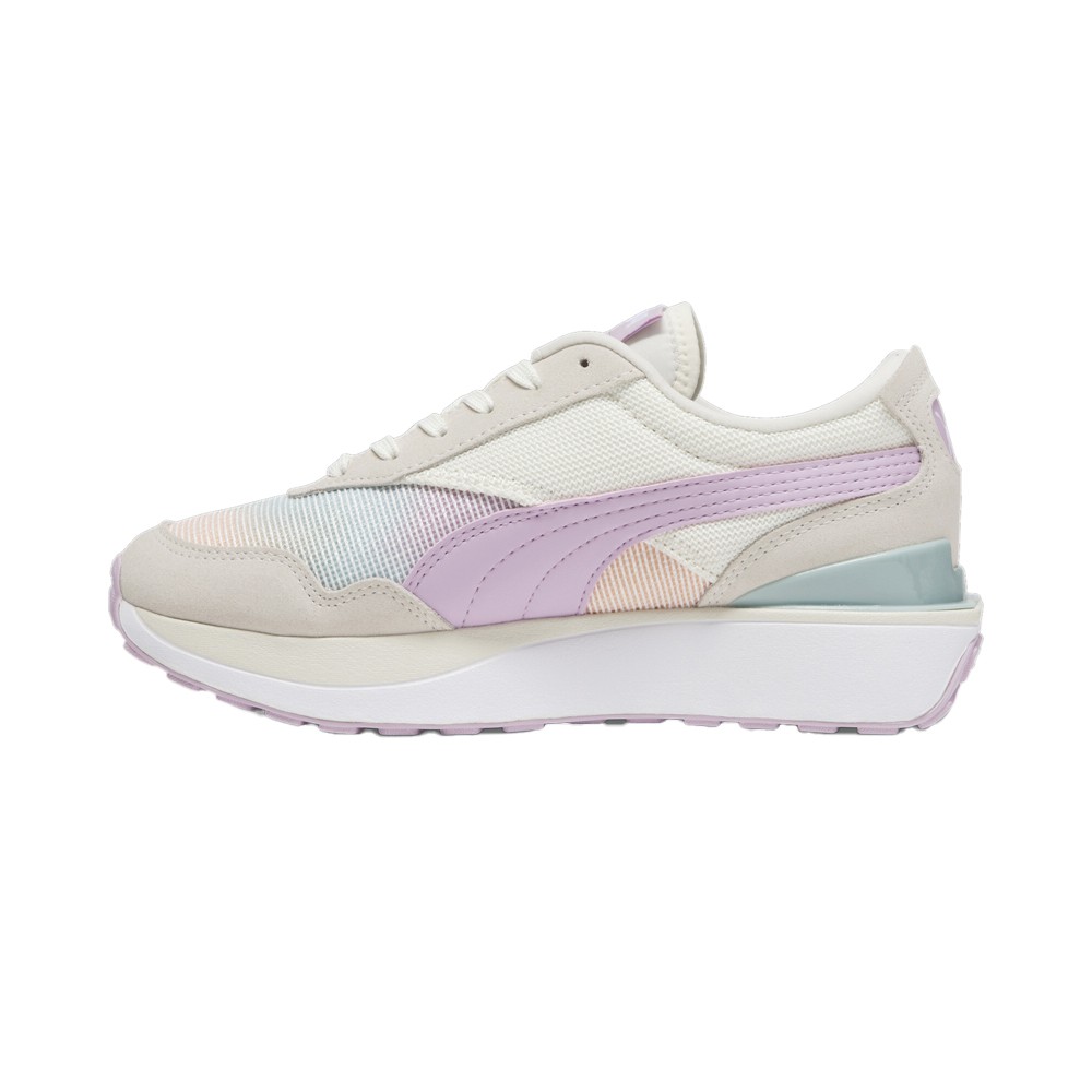 Cruise Rider Summer Daze Lace Up Sneakers Product Details Lace up Mesh fabric, nylon & suede upper Fabric lining Cushioned footbed EVA midsole Color: Warm White-Grape Mist-Turquoise Surf Kick back in unique style with the Puma Cruise Rider Summer Daze Women's Lifestyle Sneaker. Designed with inspiration from vintage cars, this sneaker is fashioned with color blocked design and a stacked outsole to add an eye-catching appeal. Midsole provides excellent comfort with a comfortable and lightweight feel. Additional Details Manufacturer Color: Warm White-Grape Mist-Turquoise Surf Color: Off White, Purple Occasion: Casual Gender: Womens Age: Adult Brand: