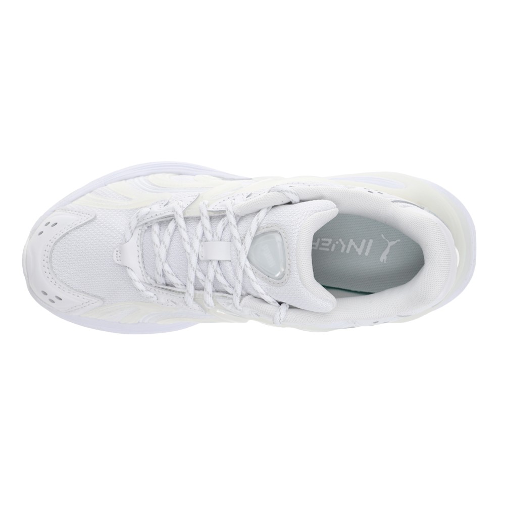 Inverse Echo Lace Up Sneakers Product Details Upper with premium leather, suede overlays, mesh Textile with leather offers breathability and durability Low boot with lace up closure for secure fit EVA midsole, Cage and midsole TPU convey uniqueness Rubber outsole for ultimate traction Color: Puma White/Feather Gray Boundary-pushing design meets innovation in these PUMA kicks. Featuring a mesh base, leather overlays, and a translucent molded cage, they redefine form with bold textures and layers. Finished with TPU gel branding and heatcut piping, every detail speaks to those who dare to stand out. Additional Details Manufacturer Color: Puma White/Feather Gray Color: White Occasion: Casual Gender: Womens Age: Adult Brand: