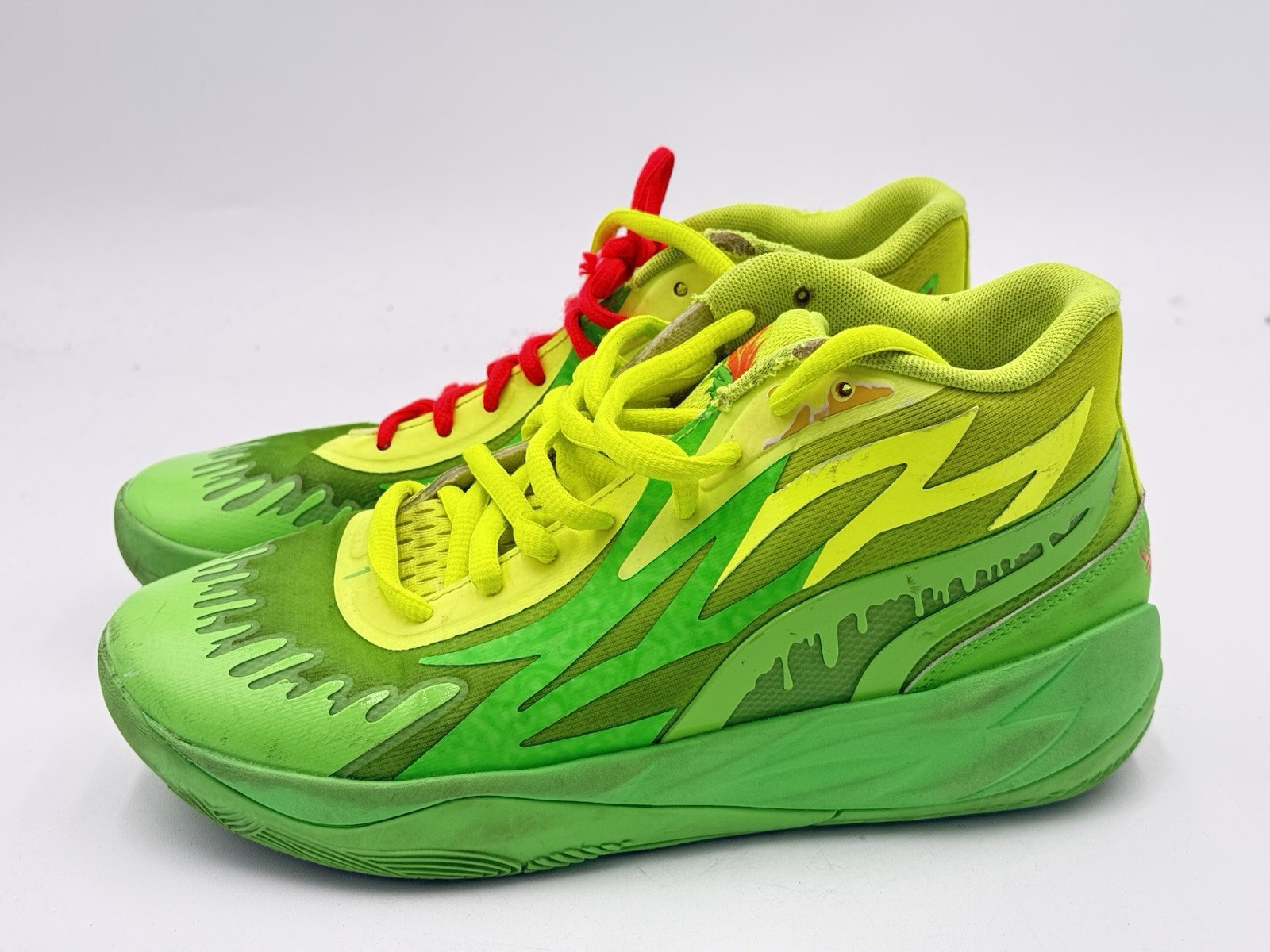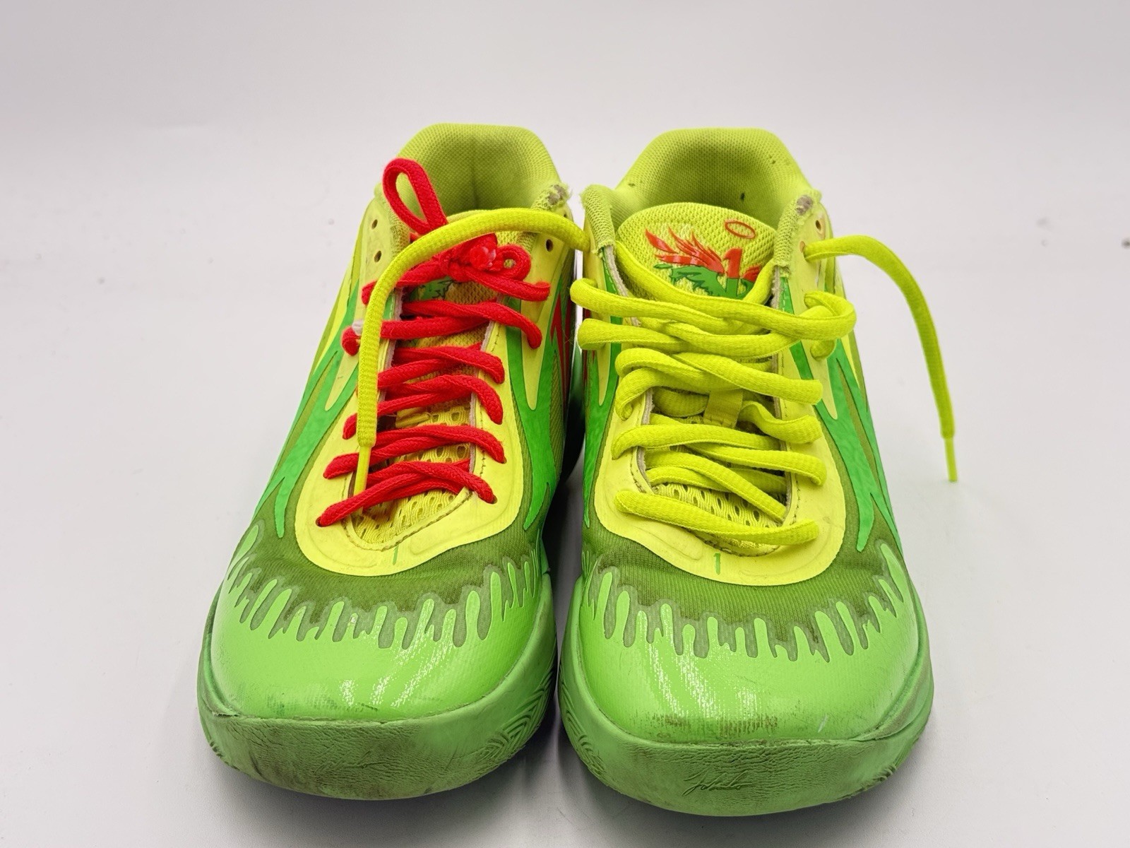 The PUMA LaMelo Ball MB.02 Nickelodeon Slime GS Size 7 is a vibrant and eye-catching sneaker designed for unisex kids. Featuring a colorful multicolor theme inspired by the popular Nickelodeon Slime, this athletic shoe combines style with performance. sneaker offers both comfort and durability for active kids. Perfect for young boys looking to make a statement while on the move.