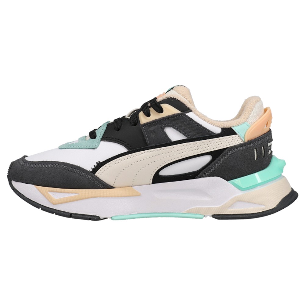 Mirage Sport Pastel Lace Up Sneakers Product Details Synthetic leather upper Lace up closure Nylon heel cap and tongue Rubber outsole Color: Puma White-Ebony Hard to miss but easy to wear, these trainers have a synthetic leather base. There are suede overlays on the vamp, heel and eyestay, while the synthetic leather PUMA Formstrip has nubuck trimming. And because they're part of the Mirage Sport line, they bring together all the vibrancy, all the energy and all the cool of DJ culture. Additional Details Manufacturer Color: Puma White-Ebony Color: Black, White Occasion: Casual Gender: Womens Age: Adult Brand: Puma