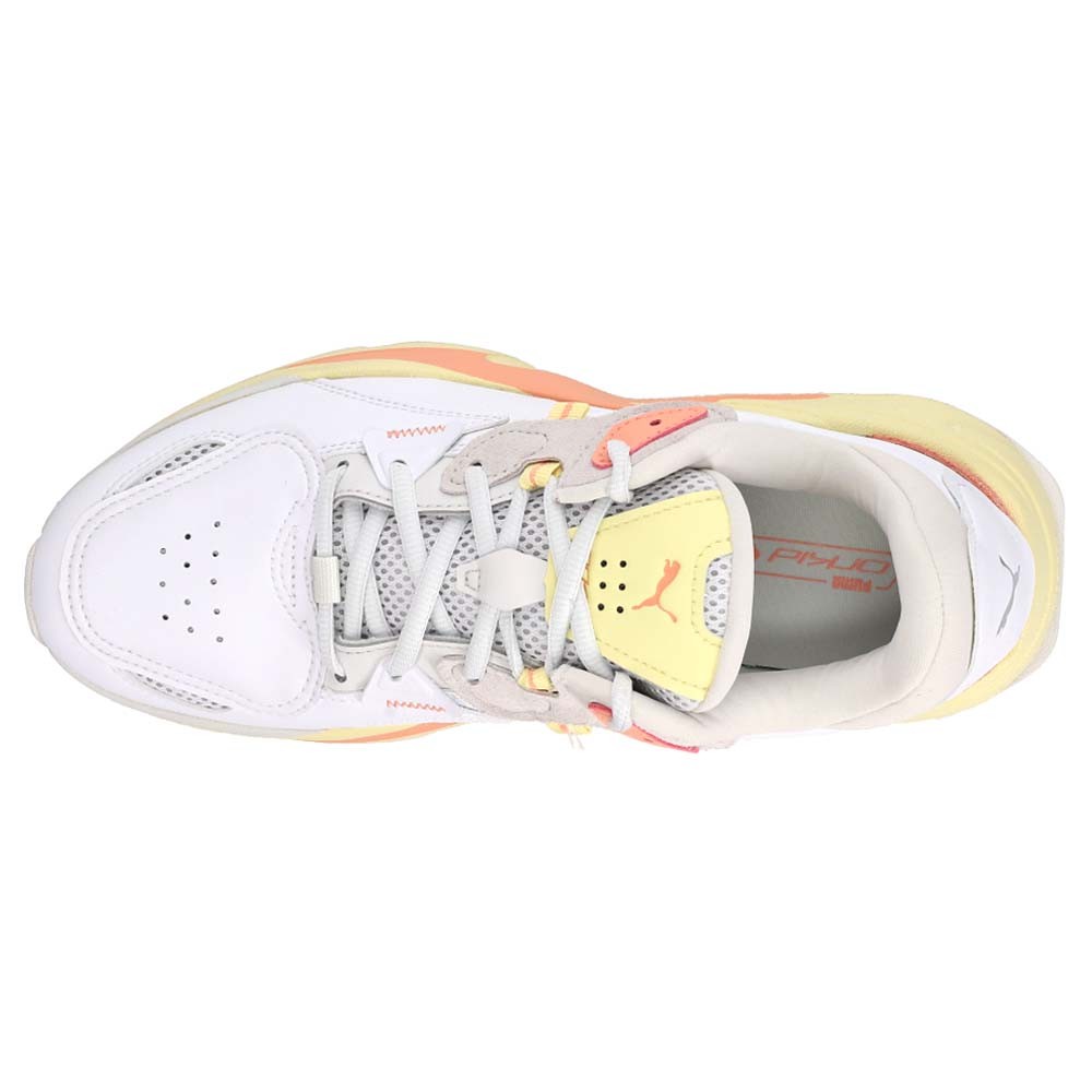 Orkid Lace Up Sneakers Product Details Leather upper Lace up closure IMEVA midsole Rubber outsole Color: Puma White/Peach Pink Step into a new world of fierce eco-friendly fashion with the first in our PUMA Fashion Warriors recycled franchise. Our Orkid Trainers take inspiration from the fusion of florals and fierce femininity, incorporating delicate colorways with sharp silhouettes and contemporary lines offset with a cushy IMEVA midsole to deliver an entirely new design concept. Additional Details Manufacturer Color: Puma White/Peach Pink Color: White Occasion: Casual Gender: Womens Age: Adult Brand: Puma