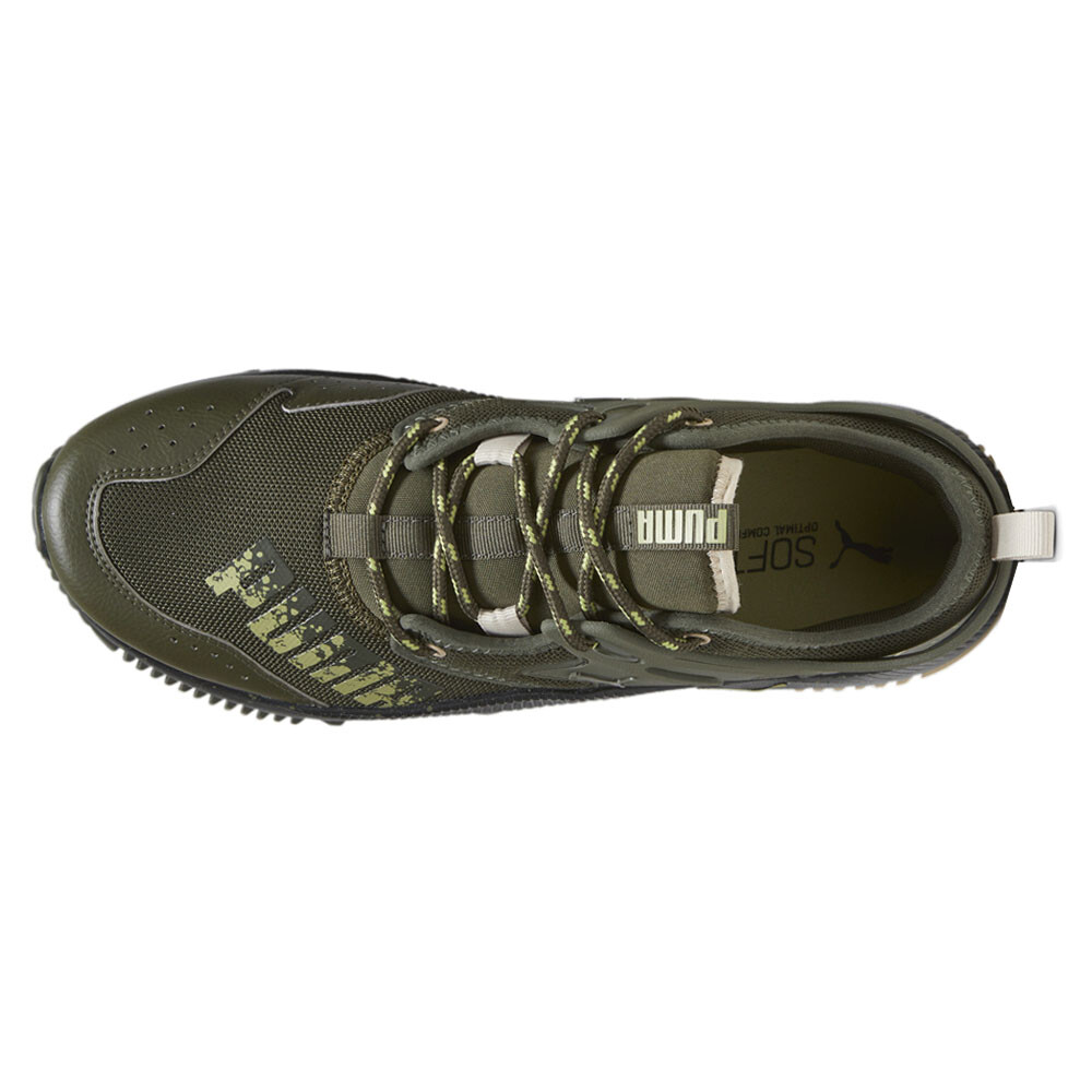 Pacer Future Trail Running Shoes Product Details Synthetic upper Thermoplastic polyurethane cage on the upper and trail inspired upper details SoftFoam+ sockliner Rugged trail inspired outsole The Pacer Future Trail is a modern street running inspired sneaker. It features a comfortable bootie construction and a thermoplastic polyurethane cage that gives a great support for the foot, both on lateral and medial side. The rugged outsole provides additional grip and the upper features trail features and bold branding. This sneaker combines comfort and fashion for everyday usage. The SoftFoam+ sockliner provides superior cushioning and optimal comfort for every step of your day. Additional Details Color: Green Occasion: Casual Gender: Mens Age: Adult Brand: Puma