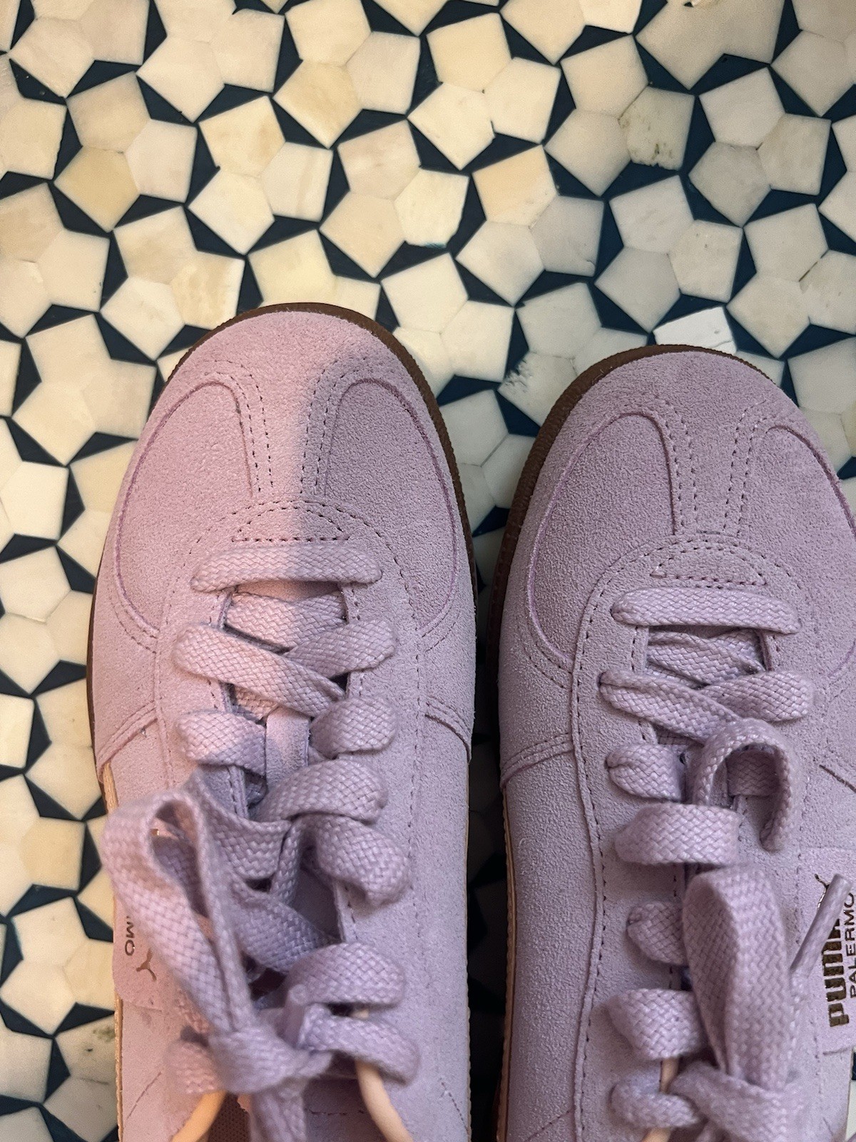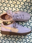 These PUMA Palermo Lilac Trainers in size 8.5 are a stylish and comfortable choice for athletic women. The purple color adds a fun pop to the sneaker style, while the PUMA brand ensures high quality and durability. Perfect for a casual day out or a workout, these trainers are a versatile addition to any wardrobe.