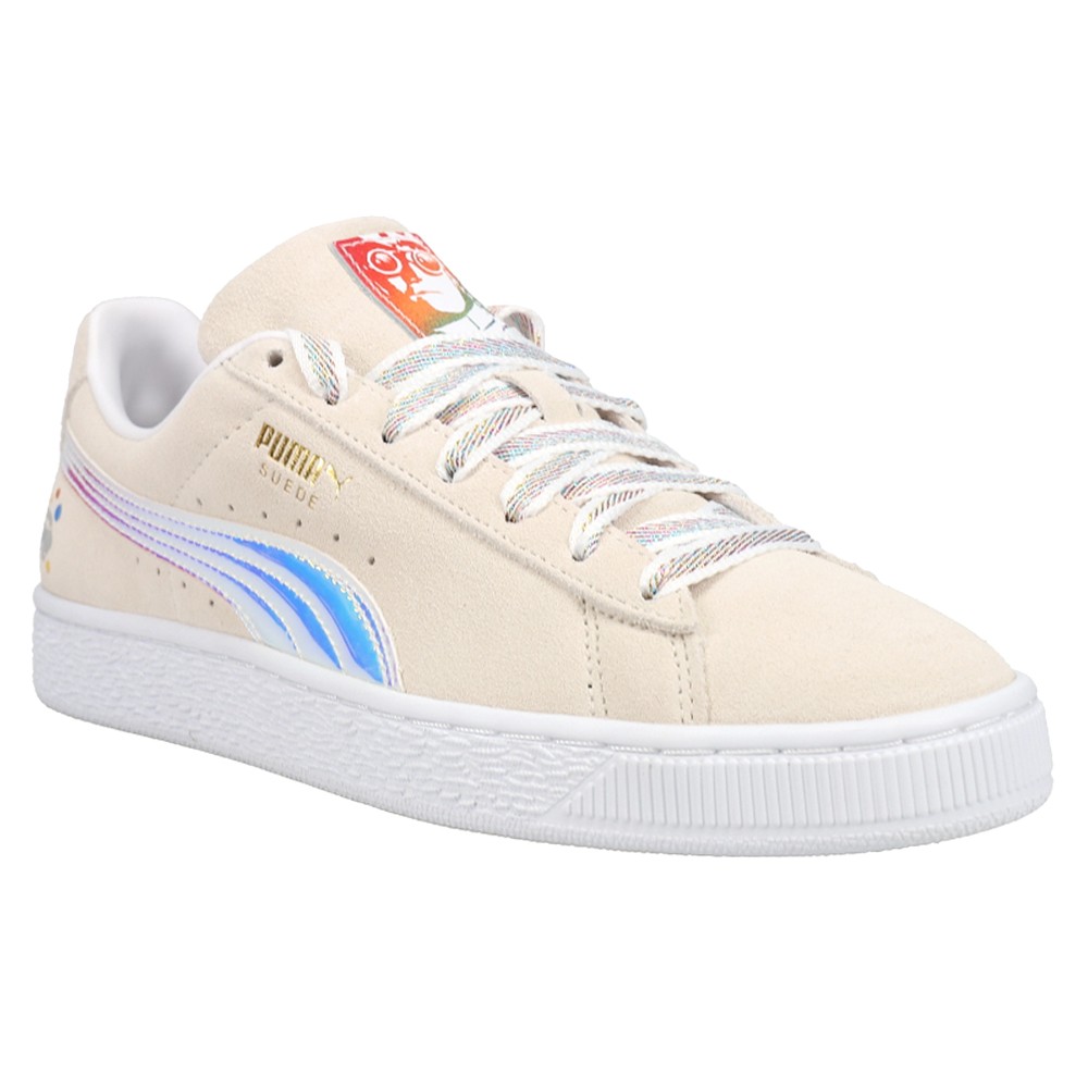 Polka-Dot Man X Classic Iridescent Suede Lace Up Sneakers Product Details Full suede upper Full lace closure Synthetic leather lining Rubber midsole and outsole for durable grip and traction Color: Whisper White-Puma White-Puma Team Gold Award-winning comic artist Jen Bartel makes a return to designing for PUMA by taking inspiration from The Suicide Squad to craft these deadly fashionable Polka-Dot Man suede sneakers! Additional Details Manufacturer Color: Whisper White-Puma White-Puma Team Gold Color: Beige Occasion: Casual Gender: Mens Age: Adult Brand: Puma