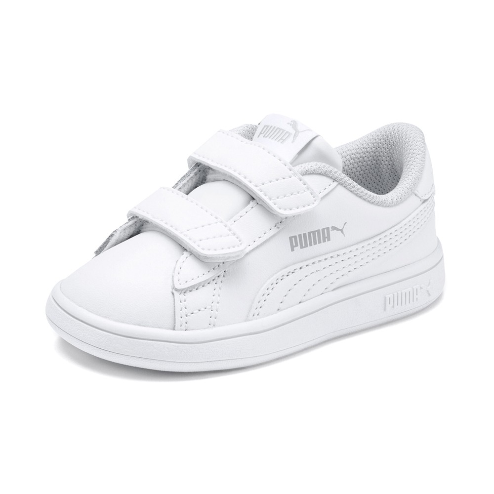 Smash v2 Slip On Sneakers (Toddler) 365174-02 Product Details Leather and synthetic upper Slip on entry with adjustable closure Classic PUMA Formstrip on side Removable child fit sockliner Non marking rubber outsole Color: Puma White / Puma White The PUMA Smash v2 Leather is the new interpretation of the PUMA Smash icon. The soft leather upper with an improved fit will help the little ones move all day long in comfort. The tennis inspired silhouette offers a clean look while the non-marking rubber provides premium grip and durability. This all time classic is made for daily wear. FEATURES plus BENEFITS Additional Details Manufacturer Color: Puma White / Puma White Color: White Occasion: Casual Gender: Boys Age: Toddler Brand: Puma