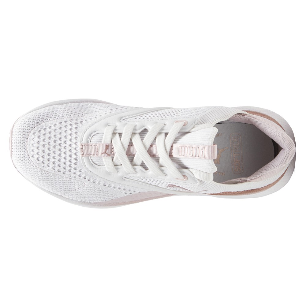 Softride Mayve Running Shoes Product Details Lace closure Zoned rubber traction Heel-to-toe drop: 9mm Surface type: Road running Recommended for: neutral pronators Color: Feather Gray/Mauve Mist/Rose Gold SOFTRIDE Mayve utilizes our plush and comfortable SOFTRIDE foam and SOFTFOAM+ footbed, ensuring all-around comfort. This style features a clamshell construction, premium knitted upper material, mixed with premium finishes throughout the upper. With a unique eyestay and deco-stitching, enjoy fashion without sacrificing comfort. It's all in the new SOFTRIDE Mayve running shoe. Additional Details Manufacturer Color: Feather Gray/Mauve Mist/Rose Gold Color: Pink, White Occasion: Casual Gender: Womens Age: Adult Brand: Puma
