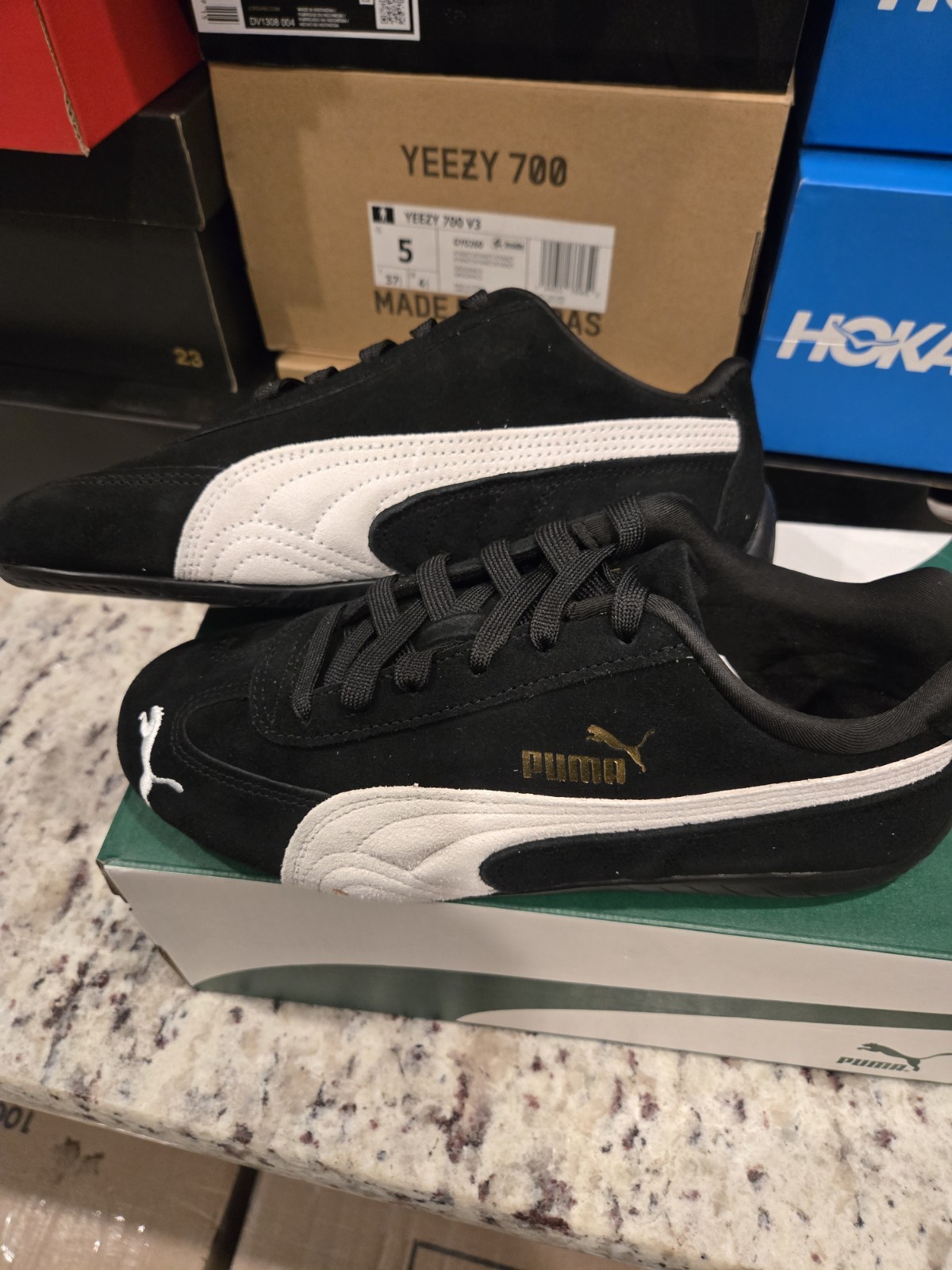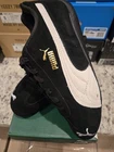 The PUMA Speedcat OG Men's Shoes in Black/White are a stylish and comfortable choice for athletic activities. With a low top design and cushioned insole, these sneakers provide support and breathability for gym training, walking, and running. Made with suede upper material and featuring the signature PUMA Speed Cat model, these shoes offer a sleek and modern look perfect for the fashion-conscious man. A versatile option for active individuals looking for quality athletic footwear. Thanks for looking!