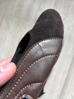 The PUMA Speedcat Ballet Flats in women's size 8 US are a rare find, with a classic slip-on design in brown suede. The round toe and rubber outsole make them comfortable and versatile for summer, fall, and spring seasons. Perfect for adding a touch of vintage flair to your outfit, these PUMA flats are a stylish and practical choice for any fashion-forward woman.