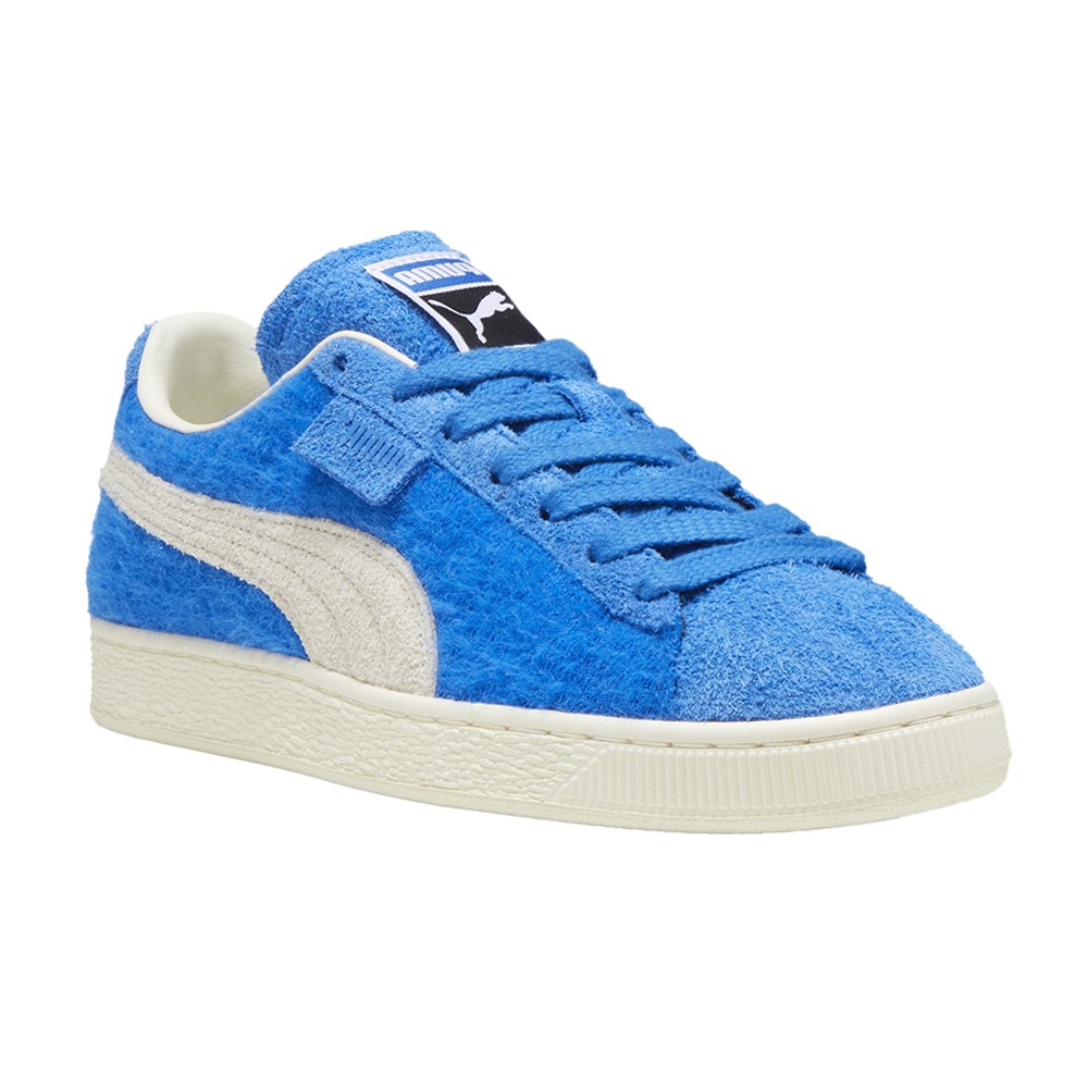 Suede Mohair Lace Up Sneakers Product Details Leather and textile upper Hairy suede vamp, heel and tongue Breathable synthetic collar SoftFoam Plus sockliner Rubber midsole With its huge impact on footwear culture, PUMA's most iconic trainer first hit the scene in 1968 and has been worn by icons of every generation since. This version is finished with a soft fluffy fabric and hairy suede for a cosy autumn look. Additional Details Color: Blue Occasion: Casual Gender: Mens Age: Adult Brand: