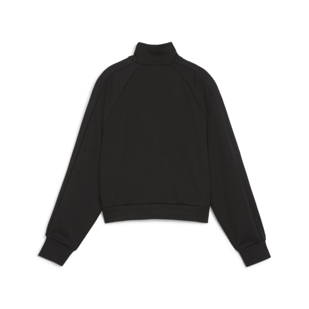 T7 Full Zip Track Jacket Product Details Relaxed fit 325 gsm, double face jacquard Collar Full-zip closure Color: Puma Black Straight out of the '70s PUMA Archives, the T7 gets a fresh update, and this time they've reworked it as this track jacket. It features a more relaxed fit and is built with an engineered double-knit material. Of course, the signature stripes are still on the sides. Additional Details Manufacturer Color: Puma Black Color: Black Occasion: Casual Gender: Womens Age: Adult Brand: Puma