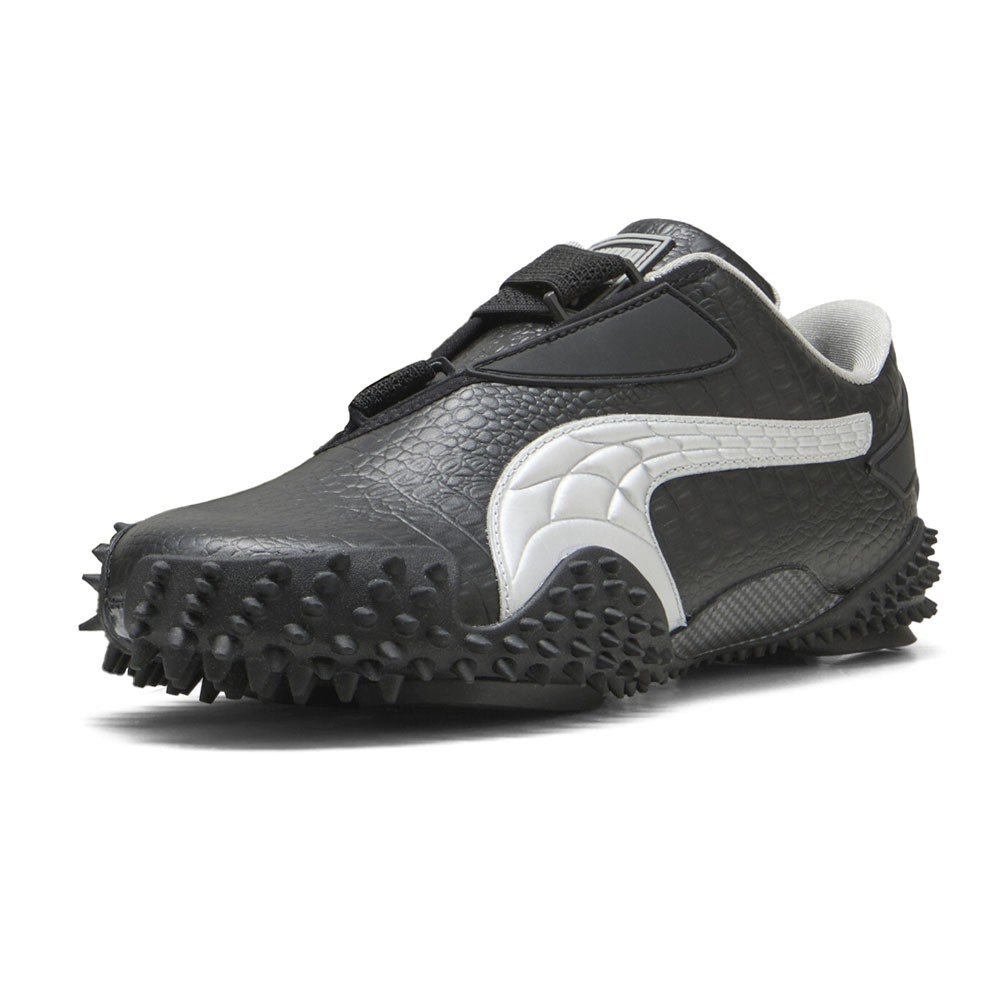 Puma X A$Ap Rocky Mostro Og Wns Product Details Fit: Regular Toe Type: Rounded Fastener: Elasticated Heel type: Flat Upper with embossed snake pattern design detail Color: Puma Black/Puma Silver A$AP Rocky brings his signature aesthetic to a brand new capsule with PUMA, made for the concrete jungle. The collection fuses classic streetwear design with striking color pops, technical textures, and touches of motorsport DNA. Two of Rocky’s favored PUMA sneakers – Inhale and Mostro OG – return alongside a bold new style and new personal Flacko favorite: Mostro Gabbia, built with a removable cage. Gritty, bold, and unapologetically A$AP, this drop is geared to stand out. Additional Details Manufacturer Color: Puma Black/Puma Silver Color: Black Occasion: Casual Gender: Womens Age: Adult Brand: