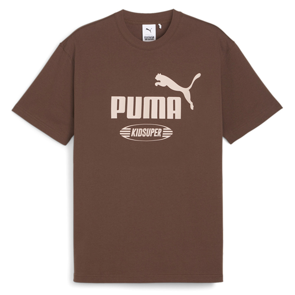 Puma x KidSuper Graphic Crew Neck Short Sleeve T-Shirt Product Details Relaxed fit Short sleeves Crew neck 100% cotton PUMA x KIDSUPER co-branding details Color: Chestnut Brown KidSuper founder Colm Dillane is an ex-professional footballer, designer, and artist. The brand is known for their wildly inventive runway shows and even more inventive looks. The PUMA x KIDSUPER collaboration reinterprets PUMA classics through the lens of KidSuper – with pastel colors, dynamic lines, and bold prints featuring his art. Additional Details Manufacturer Color: Chestnut Brown Color: Brown Occasion: Casual Gender: Mens Age: Adult Brand: Puma