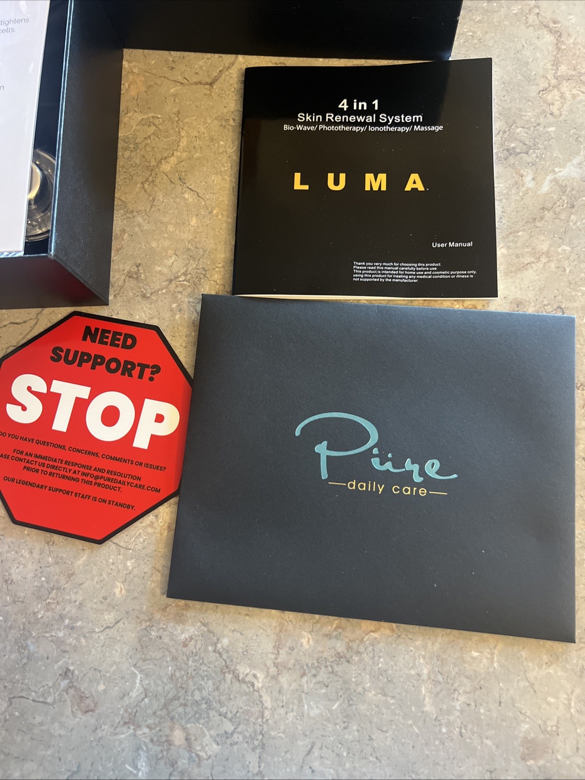 PURE DAILY CARE LUMA Skin Therapy Anti-Aging Wand 4-in-1 Opened box. Wand still has wrap on it never been used but accessories are there couple things missing ? Not sure what. But it’s a new item being opened and inspected but not tested Pet smoke free home