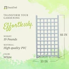 You may also like Extra Large Capacity Galvanized Steel Post Mount Mailbox W/ Outgoing Flag New 37.78 USD 53.97 USD Free shipping 30% off Weatherproof Outdoor Cat House Insulated Rabbit Hutch Small Pets Shelter Wood 41.99 USD 59.99 USD Free shipping 30% off Hot Cold Water Dispenser 5 Gallon Cooler Child Safety Lock Storage Cabinet New 69.29 USD 98.99 USD Free shipping 30% off 24 In Double Towel Bar Bathroom Organizer Home Accessory Zinc Construction New 38.5 USD 55.0 USD Free shipping 30% off 6-Tier Jewelry Box PU Leather Organizer W/ Mirror & 5 Drawers Storage Case New 41.99 USD 59.99 USD Free shipping 30% off Heavy Duty 5 Tier Interlocking Shelving Adjustable Ventilated 180 Lb Capacity US 77.9 USD 111.29 USD Free shipping 30% off Commercial Chrome Wire Shelving 18x60 In Heavy Duty Storage 2 Shelves Kitchen 70.0 USD 100.0 USD Free shipping 30% off 12 Pack Heavy Duty File Storage Boxes FastFold Portable Secure Lid Stacking New 49.32 USD 70.46 USD Free shipping 30% off Machine Washable Non-Slip Kitchen Rug Set 2 PCS Super Absorbent Comfort Mat New 48.99 USD 69.99 USD Free shipping 30% off Lockable Clear Stackable Storage Bins Heavy Duty W/ Lid Mobile Containers New 88.33 USD 126.18 USD Free shipping 30% off Indoor Cat Tree W/ Scratching Board Feeding Bowl Multi-Level Activity Center New 40.94 USD 58.49 USD Free shipping 30% off 3 Tier Metal Folding Shelves Set 2 Home Office Storage Organization Adjustable 78.18 USD 111.68 USD Free shipping 30% off About this item Stylish Arbor: Classic grid style supports plants and climbing vines, complementing your space Construction: Made of PVC with a UV stabilizer to prevent damage despite exposure to the elements Built to Last: Will never delaminate, crack, peel, fade, or discolor over the years Easy and Convenient Maintenance: Simply spray with a garden hose and wipe clean using a dry cloth Grid Trellis Details: Ground anchors and hardware included; Dimensions (W x H): 35 x 65 inches Color White Material PVC Brand DuraTrel Product Dimensions 35"W x 66"H Item Weight 19 Pounds You may also like Mini Fridge Organizer Adjustable Shelving Rolling Caster Storage Solution New 54.73 USD 78.18 USD Free shipping 30% off Lockable Clear Stackable Storage Bins Heavy Duty W/ Lid Mobile Containers New 88.33 USD 126.18 USD Free shipping 30% off Adjustable Wooden Pet Stairs 4 Levels Foldable Dog Steps Non-Slip Design White 79.79 USD 113.99 USD Free shipping 30% off Outside Heavy-Duty Adjustable Hammock Stand 2-Person 550 Lbs W/ S-Hooks Portable 87.5 USD 125.0 USD Free shipping 30% off 74 Qt Storage Bins Stackable Snap-Tight Lids BPA-Free Water Resistant 4-Pack 58.1 USD 83.0 USD Free shipping 30% off Commercial Chrome Wire Shelving 18x60 In Heavy Duty Storage 2 Shelves Kitchen 70.0 USD 100.0 USD Free shipping 30% off Computer Desk W/ LED Lights Power Outlets 3 Drawers Storage Home Writing Table 62.99 USD 89.99 USD Free shipping 30% off Bathroom Mirror Cabinet W/ Storage Adjustable Shelves Open Compartment Modern 69.99 USD 99.99 USD Free shipping 30% off 10x20 Ft Outdoor Waterproof Canopy Tent Removable Sidewalls Heavy Duty Event New 67.19 USD 95.98 USD Free shipping 30% off Durable Planter Square Pot W/ Drainage Modern Design Indoor Outdoor 2 Pack New 101.49 USD 144.99 USD Free shipping 30% off Round Table Top Reversible Laminate Heat Moisture Resistant Indoor Dining New 63.64 USD 90.92 USD Free shipping 30% off Stackable Storage Containers 30 Qt Clear Plastic Bins Latching Lid Shatterproof 68.52 USD 97.88 USD Free shipping 30% off
