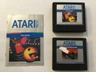 Pac-Man & Countermeasure Atari 5200 Video Game Cartridges, 1982 & 1983. Includes: Two game cartridges and Pac-man instruction manual only (no manual for Countermeasure), and three controller overlays (one for Pac-Man, two for Countermeasure). The game cartridges have not been tested. The Pac-Man cartridge has creases, stains, and scratches on the front label. There are stains on the back lower corner, and there is dust in some areas. There is one Pac-Man game controller overlay which has some scuffs and scratches. The Pac-Man instruction manual has scuffs and scratches on the front and back, with stains on the spine and front and back covers. The Countermeasure cartridge has some scuffs, scratches, small creases, stains, and old retail stickers on the front label. The two controller overlays have some scuffs and scratches, too. See photos. Sold “As Is”.