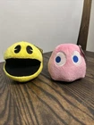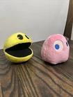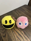 Pac-Man Plush Yellow 4.5" + Ghost Pink Plush 4.5 Bandai Namco Toy Factory LotOf2