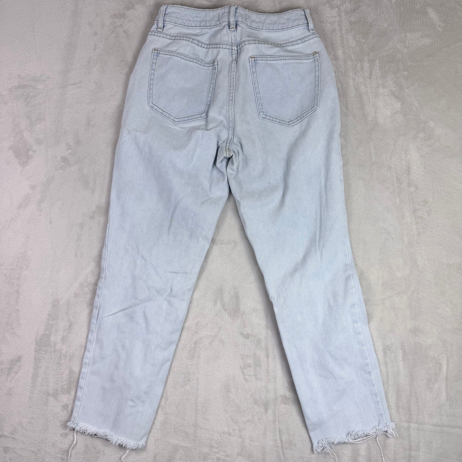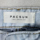 PacSun women’s distressed mom jeans in blue light wash, size US 24. High-rise denim with ripped detailing and a relaxed mom jean silhouette — perfect for casual outfits, everyday wear, or pairing with tees and sneakers. These jeans are Pre-Owned and show normal signs of wear such as light fading, distressing, or softening of the denim consistent with prior use. Please review all photos carefully to assess condition and any imperfections before purchasing.