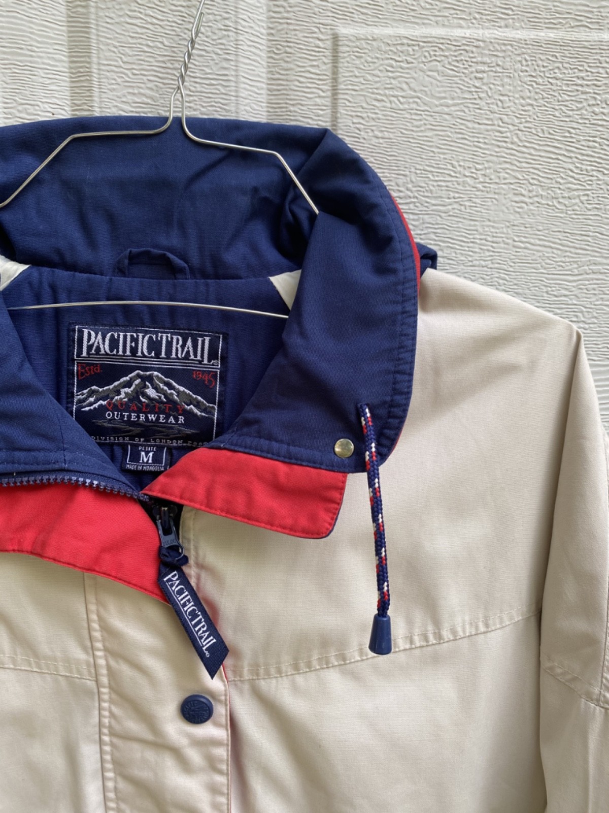 The Pacific Trail Men's Beige, Red, Blue Lined Vented Hooded Jacket in size Medium is a stylish and versatile outerwear option for casual occasions. Made from a comfortable cotton blend outer shell with a softshell fabric type, this mid-length jacket features a zip closure and a hood for added protection against the elements. The jacket is lined with nylon and insulated with polyester, making it suitable for winter, fall, and spring seasons. It also includes accents like buttons and zippers, and is machine washable for easy care. Perfect for activities like walking, skiing, and hiking, this jacket combines functionality with a classic design.