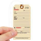 Industry Leading Durability Manila Tags are made of thick 10pt cardstock with a fiber reinforced patch around the 1/4" diameter eyelet for extra pull-strength. Each tag has a corresponding tear-off stub and pre-attached string. Unlike other tags, our Manila Tags with Stub have a writeable surface to note down details of the article. Cardstock is suited for indoor applications. USA's Oldest Tag & Sign Manufacturer Family owned since 1918, we take immense pride in our signage. Being one of the oldest certainly means we know this business in and out. Our South Dakota factory is the oldest manufacturer of outdoor signs in the USA. We have been an integral part of safety and convenience our signs, labels, and tags have provided over the years. Ideal For Recordkeeping Tag helps you write important information regarding the article. Pre Numbered Tag and tear-off stub is pre-numbered with the same serial number. Each tag will have a unique, sequentially arranged number, even if you order several packs. DURABLE: Repair Tags Size-6 are made of 10 point cardstock, an industry standard for durability. CONVENIENT USE: Manila Repair tag comes with a sturdy reinforced eyelet and a pre-attached string. Not recommended for outdoors. TEAR-OFF STUB: Organize your repair tag work with serialized tag with a handy tear-off stub. Tear-off stub has the same serial number as the tag - to make it easy to track and find the item. MADE IN USA: All components are made in the USA and offer superior quality. PACK CONTENTS: Pack of 100 - 5.25 x 2.625 inch manila cardstock tags with pre-attached wires.