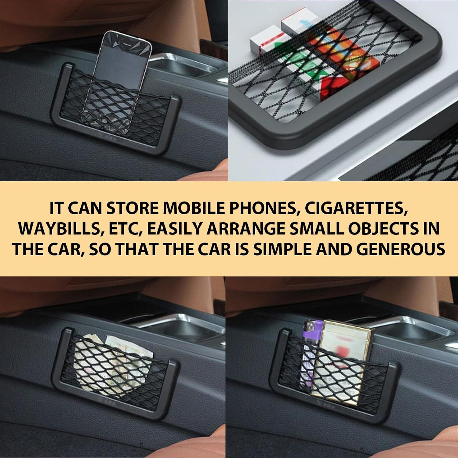 This car storage bag is a game-changer for keeping my ride tidy! The stretchy nylon mesh fits my phone, wallet, and small essentials perfectly while letting them breathe. I love how the sturdy ABS frame holds its shape even when stuffed—no more floppy organizers sliding around. The slim design tucks neatly between seats without bulk, and the material wipes clean in seconds. Perfect for road trips or daily commutes!