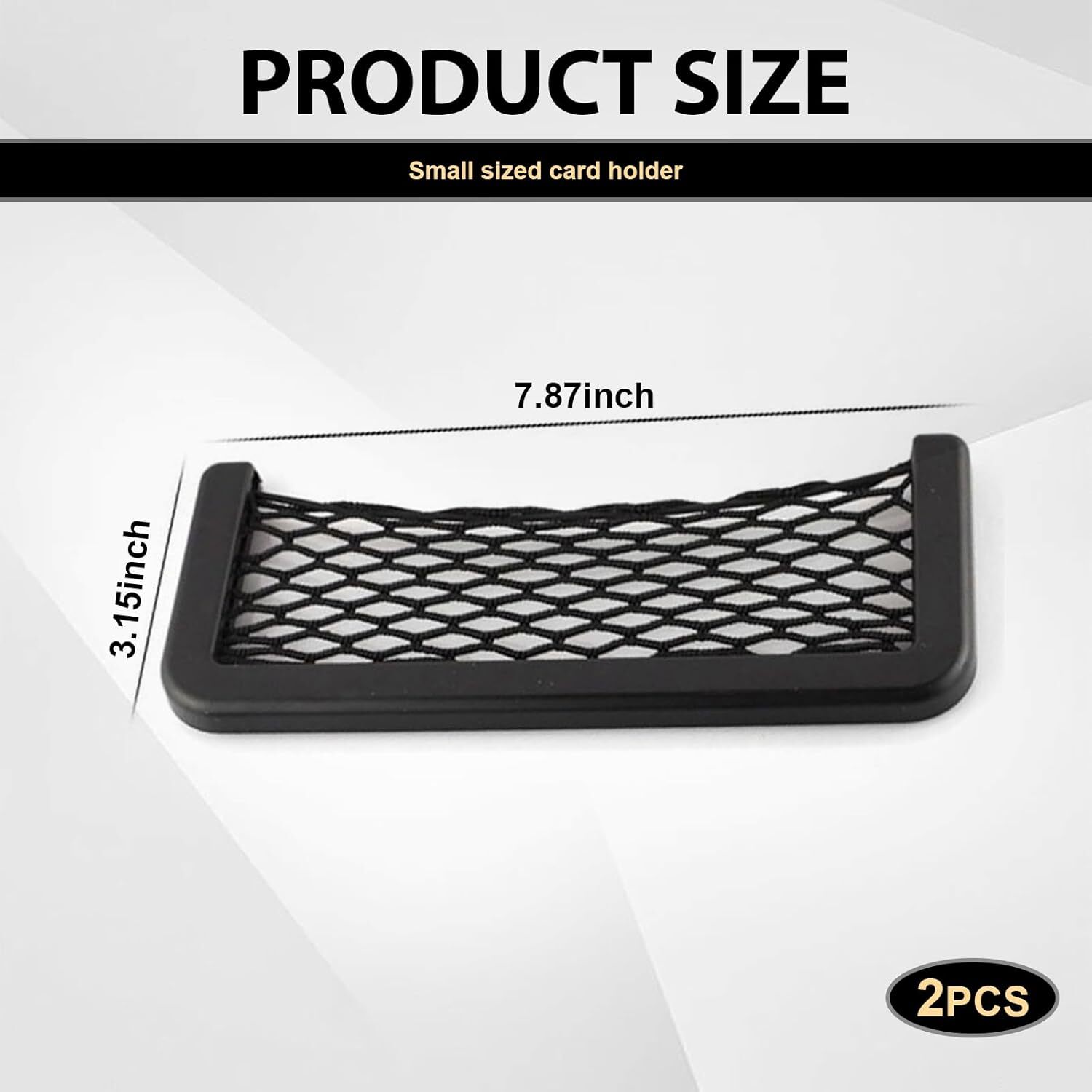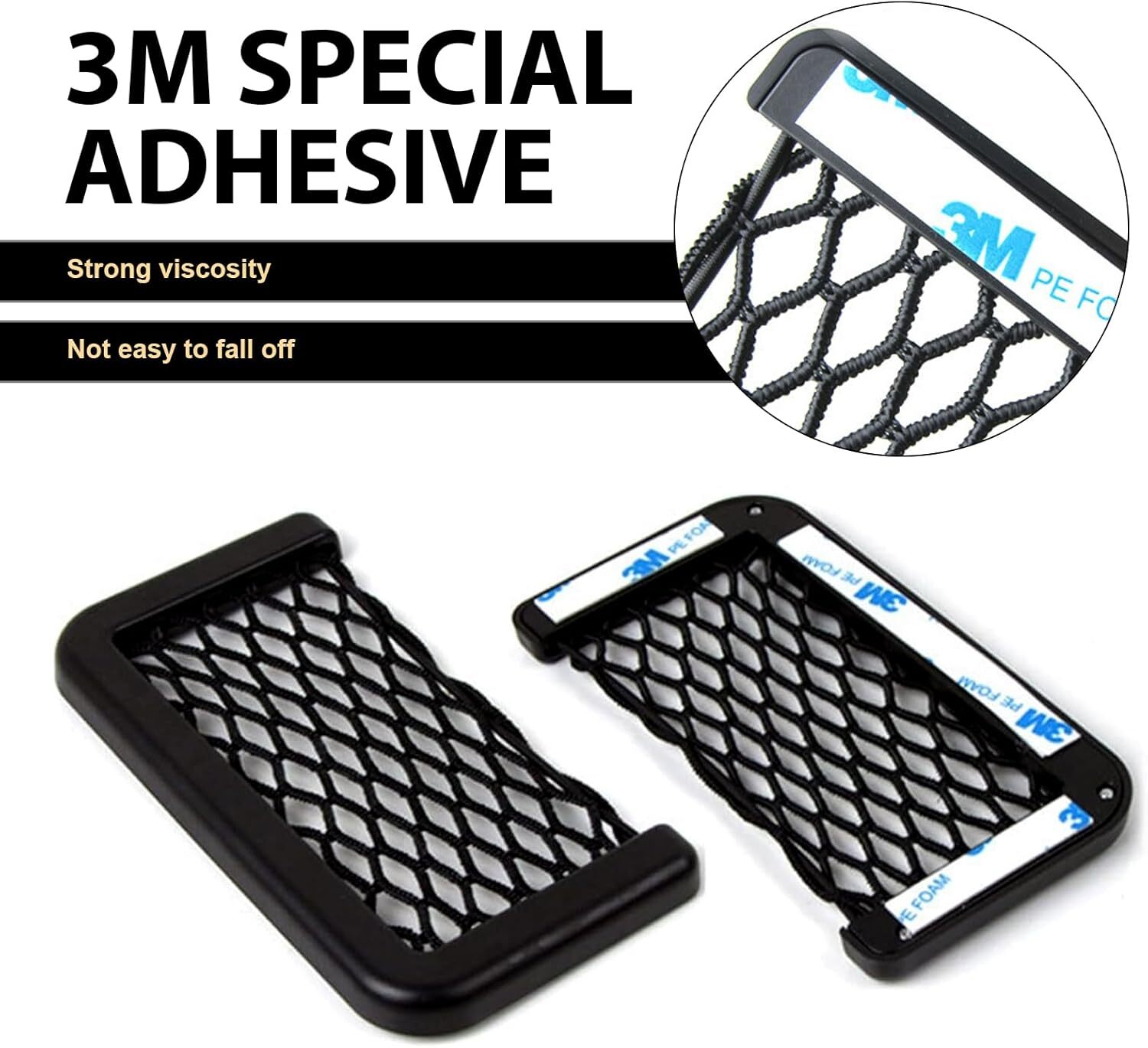 Stretch Nylon Mesh: The mesh of the storage bag is made of stretch nylon material, which is soft and elastic. It can hold smaller items such as mobile phones, wallets, manuals, and more. The mesh also has good breathability, preventing items from becoming damp over time. ABS Frame: The storage bag features an ABS frame design, which is highly durable and resistant to external collisions and scratches. This material helps protect the bag from being easily deformed or damaged. Keep Clean: The ultra-thin design of this storage net bag does not take up space in the car, keeping items secure without excessive movement or noise. It helps eliminate clutter and maintain order in your vehicle. Packing List: You will receive two self-adhesive car sundries storage net bags to meet your needs. They can also be used at home to organize irregular items such as tools. Self-adhesive Installation: The storage bag has a self-adhesive design that allows for easy application anywhere inside the car. Simply peel off the backing and stick it in place, ensuring a convenient installation that does not damage or leave residue on your vehicle's interior. Dimensions: 8.54 x 7.09 x 1.14 inches.