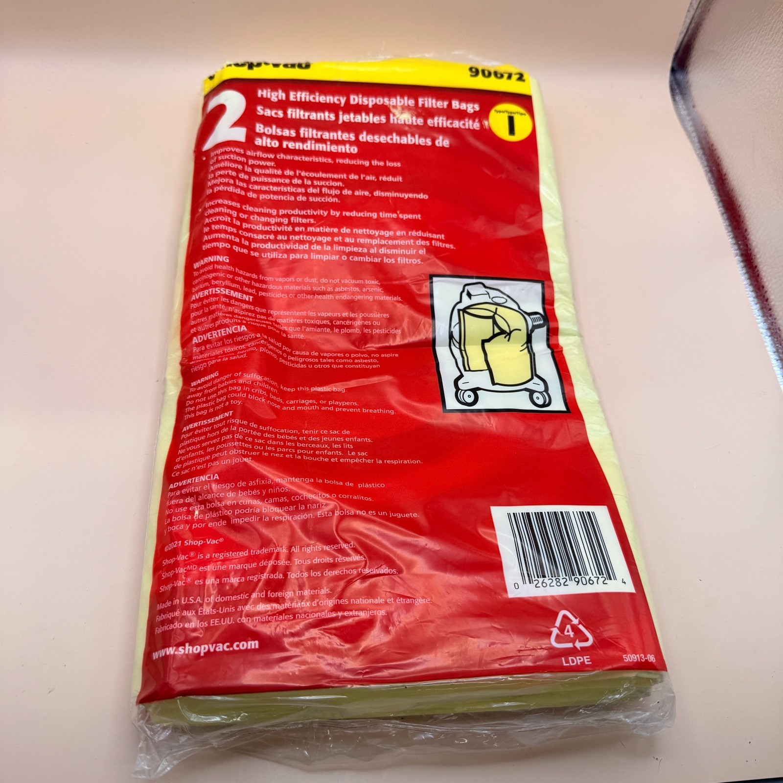 Pack of 2 Shop-Vac 9067233 Disposable Vacuum Bags Fits 10-14 Gallon Tanks, Heavy Duty Paper